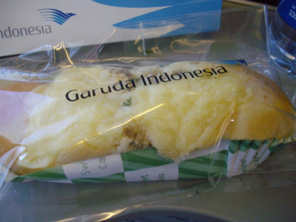 Inside the box was a bottle of water and a cheesey breakfast roll on a sweet bread. It was soft and savoury and quite delicious!