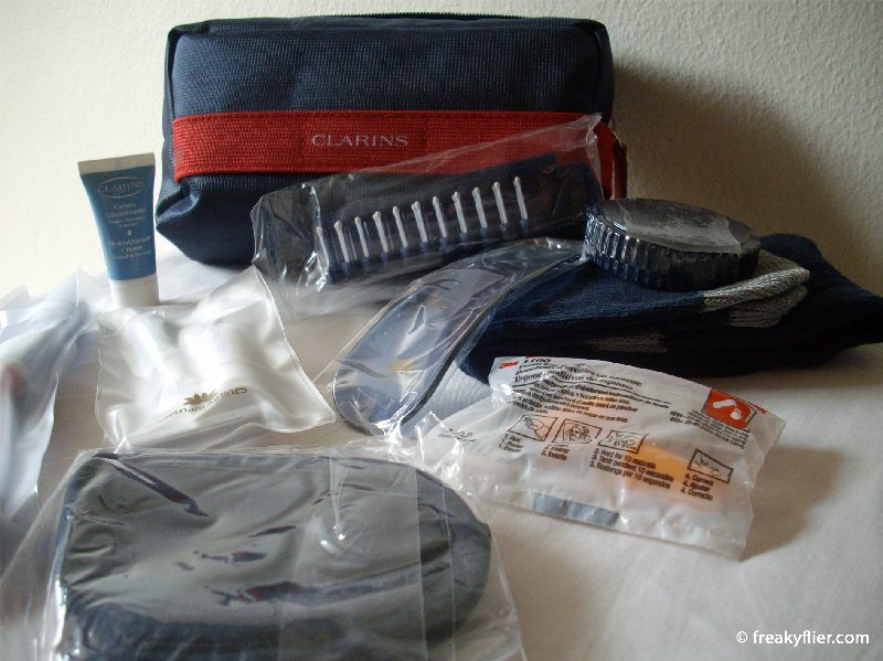 Prior to departure, a choice of orange juice, sparkling wine or beer was offered and as the flight attendants made their way through the cabin with a selection of Australian and Vietnamese newspapers all Business class passenger were handed a Clarins amenity kit for nine hour the journey ahead. Interestingly the only Clarins item, other than the red labelled blue toiletries bag, was a small 5ml tube of moisturising ‘Hydra-Quench’ cream. Other items included a shaving set, toothbrush and toothpaste, earplugs, brush, socks, eyeshades, earplugs and (not often seen in amenity kits these days) a shoe horn and shoe shine pad.