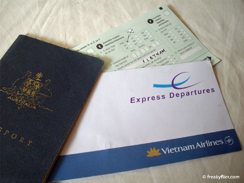 On this trip, I was flying Vietnam Airlines from Sydney to Ho Chi Minh City and my booking was coded ‘space available’. Upon check-in I was advised the flight was relatively full and handed an Economy class boarding pass along with an express departures card (as a token of my potential upgrade) which meant I could bypass the long screening lines of immigration and security. I was to hand in my Economy boarding pass at the departure gate and if a seat was available in Business I would be given a new boarding pass. With most airlines holding a Business class boarding pass will give you access to their lounge but Vietnam Airlines operates a separate system where they give you an invitation, which in Sydney is the Qantas Club Business Class Lounge, which Vietnam Airlines pays Qantas for each invitation they collect. As I was on a space available status, I was not invited into the lounge and waited at the gate hopeful for my upgrade. As the aircraft started to board, I was called over to the gate agent and I was handed a new boarding pass, for Business class. The upgrade gods were smiling down on me :)