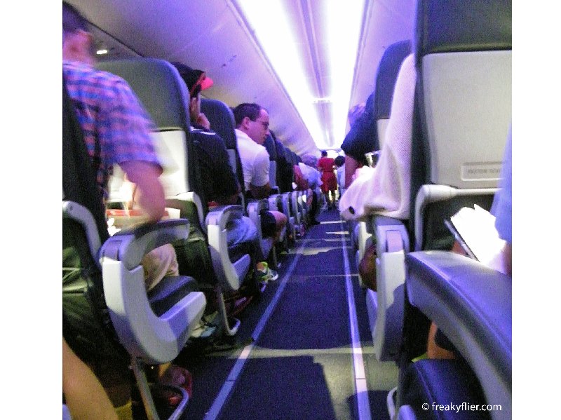 Although the aircraft was parked at gate 34, boarding hadn’t yet started when I arrived at the boarding area. I am unsure as to the delay as the announcements were inaudible When the flight did start boarding, around 19:15, it took place from both the front aerobridge and the rear stairs. As I was seated towards the back of the aircraft in seat 24D, I boarded through the latter.