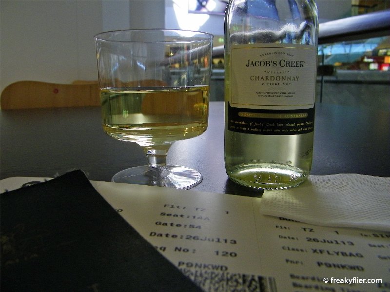 I paid the AUD$99, well AUD$146.50 actually, as when upgrading at the counter, there was a AUD$40 fee and an AUD$7.50 credit card fee. It also meant my choosing the S-t-r-e-t-c-h seat in economy was lost money as the fee isn’t refunded or taken into consideration….oh well I chose to pay it. The upgrade meant I would have a larger seat, inflight entertainment, in-seat power, a meal and drink all in the exclusive ScootBiz cabin. Lounge access isn’t available for ScootBiz passengers at Sydney Airport, so I purchased a wine near the departure gate to contain my excitement before the priority boarding began.