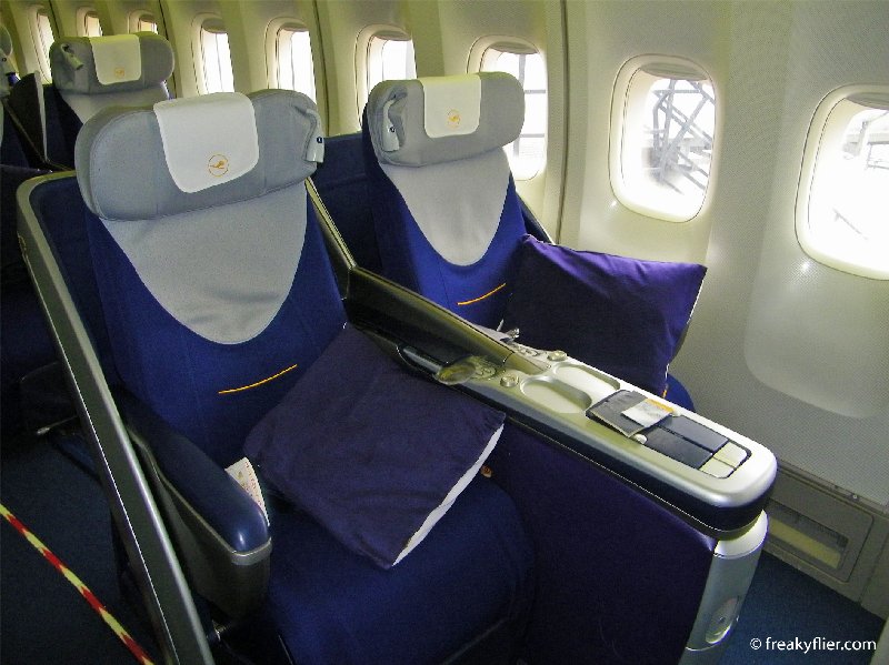 First class is located upstairs on Lufthansa’s 747’s with Business Class separated into three cabins on the main deck. My seat 1A, a window seat, was located in the forward cabin in the aircrafts nose.