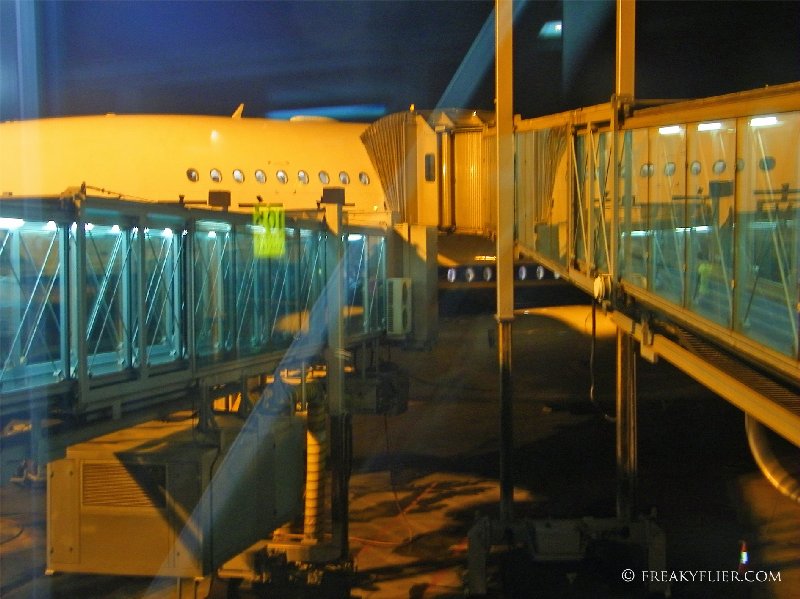When boarding commenced it was made through one of three aerobridges that connected the terminal to the upper and lower decks. Two connected the main deck, one forward for the First Class Platinum Suite cabin and a second for Economy Class. A third aerobridge connects to the upper deck for the Business Cabin and smaller rear Economy Class where my seat was located.