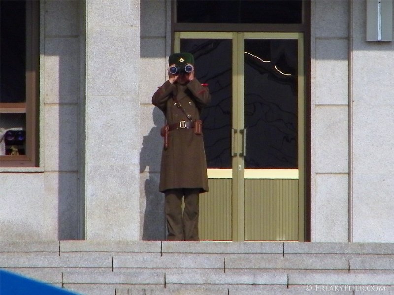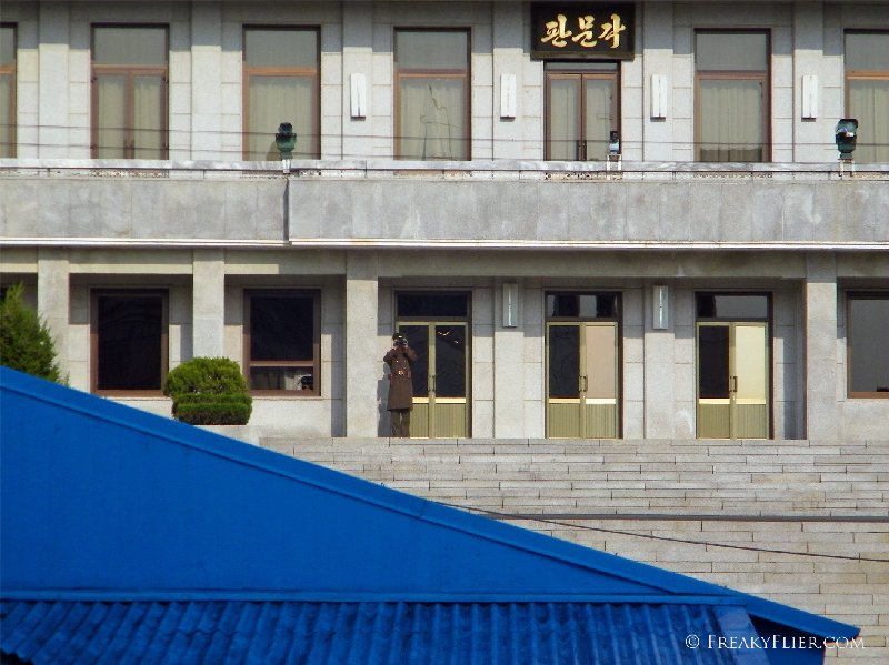 North Korean soldier guarding his building ‘Panmungak’ (note the other sets of ‘eyes’)