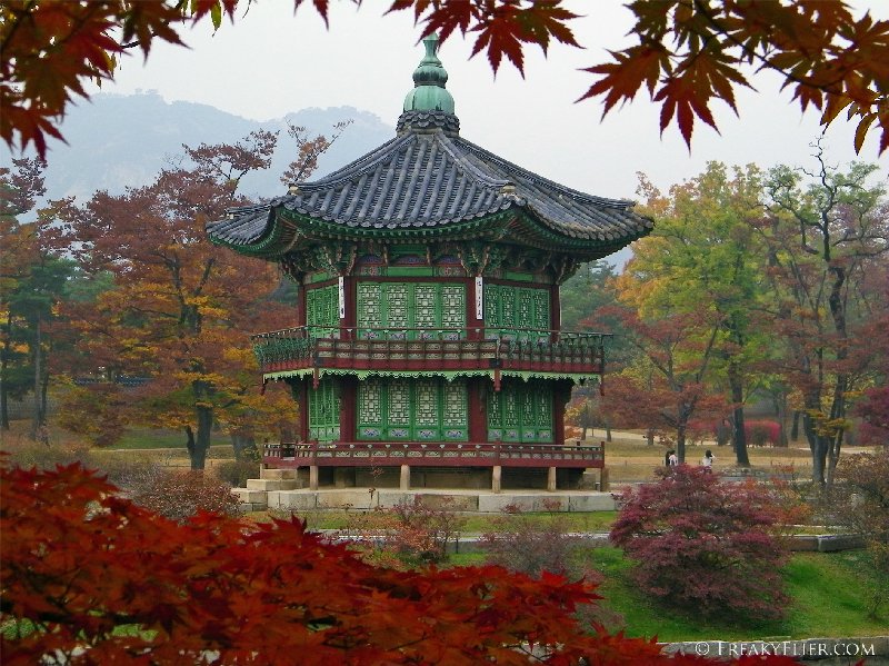 Hyangwonjeong, built by Emperor Gojong in 1873, is a small two story pavilion, hexagonal in shape, with its name translating to “Pavilion of far reaching fragrance” . It is situated on a man made island to the south of the palace connected via a bridge to the palace grounds. Hyangwonjeong Pavilion is one of the most photographed buildings in Seoul, used as a backdrop, locals bringing their families for group photo’s especially during Autumn when the leaves change colours dramatically.