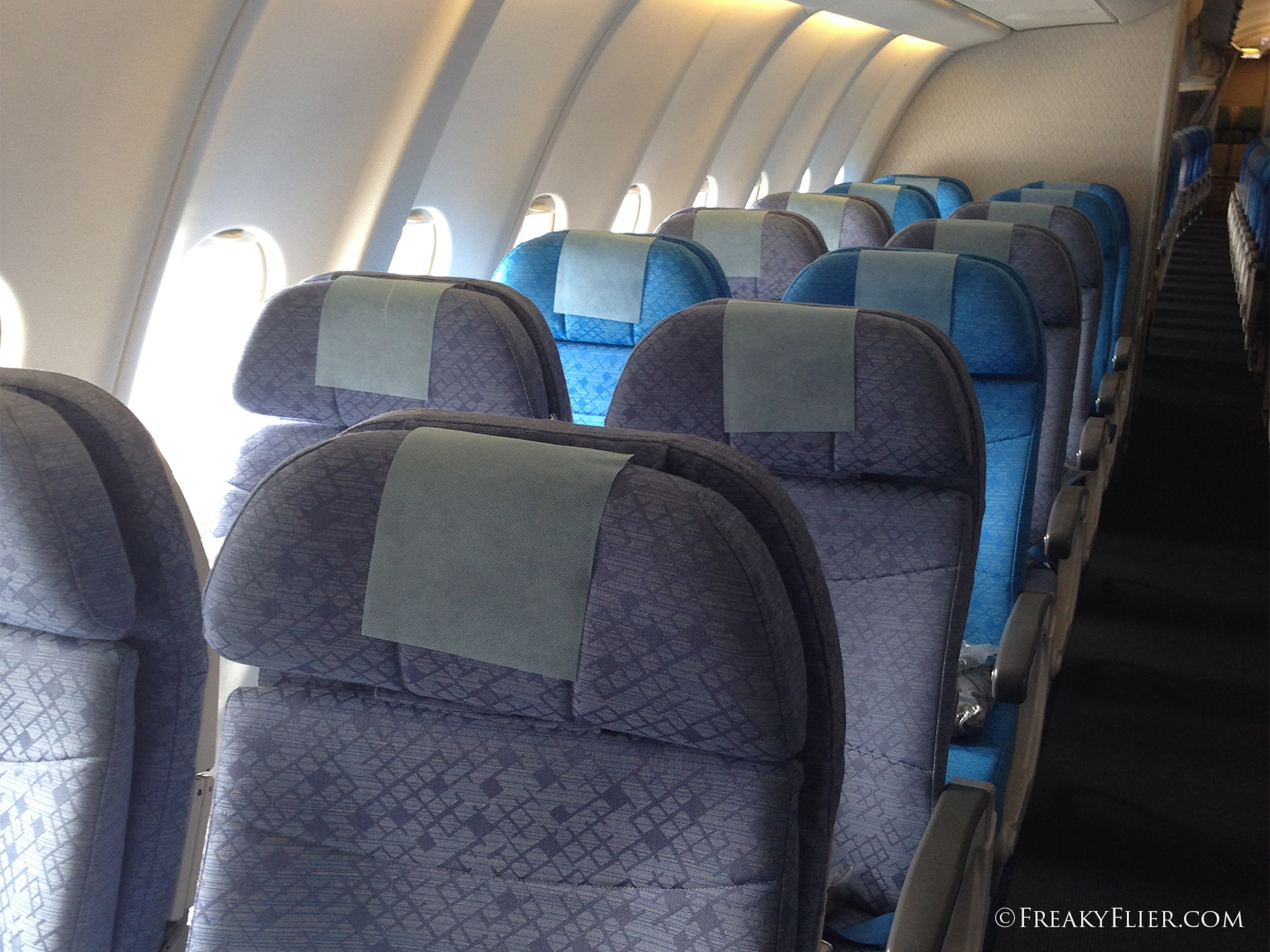 There are 28 seats in the Premium Economy Class cabin, with each seat featuring a seat pitch of 38″ / 96.52 cms and width of 19.3″ / 49 cms, are configured in a 2-3-2 layout.