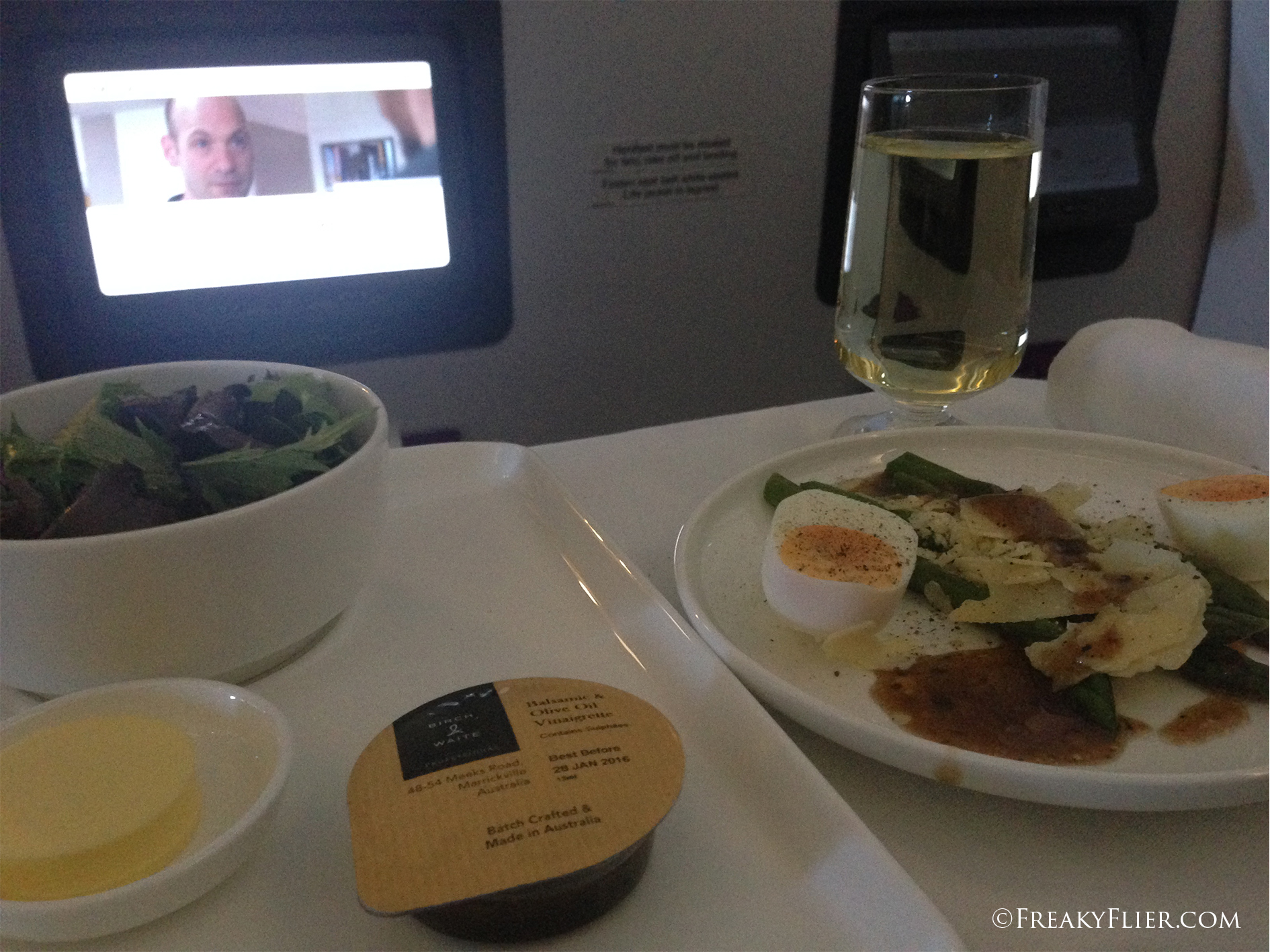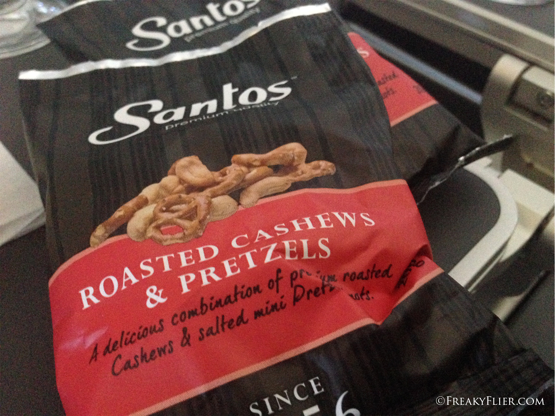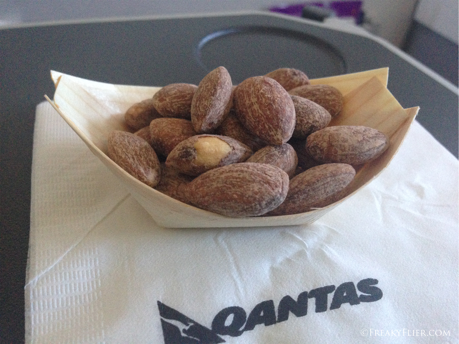 So those nuts and ‘Nutgate’. You’ve probably heard the story of the Korean Air Vice President Cho Hyun-ah who went (shall I say it?) ‘nuts’ over being served macadamias in their packet and not on a plate in the First Class cabin of a flight leaving New York’s JFK airport. She ordered the flight attendant off the plane and delayed the flight for 20 minutes. In the end she lost her job and received a 12 month prison sentence, not to mention the ‘loss of face’, her honour, prestige and reputation worldwide. When I was served these almonds right after take off, I was pretty impressed, sure it wasn’t on a plate but the little disposable dish made the pointy end service a notch above those down the back.