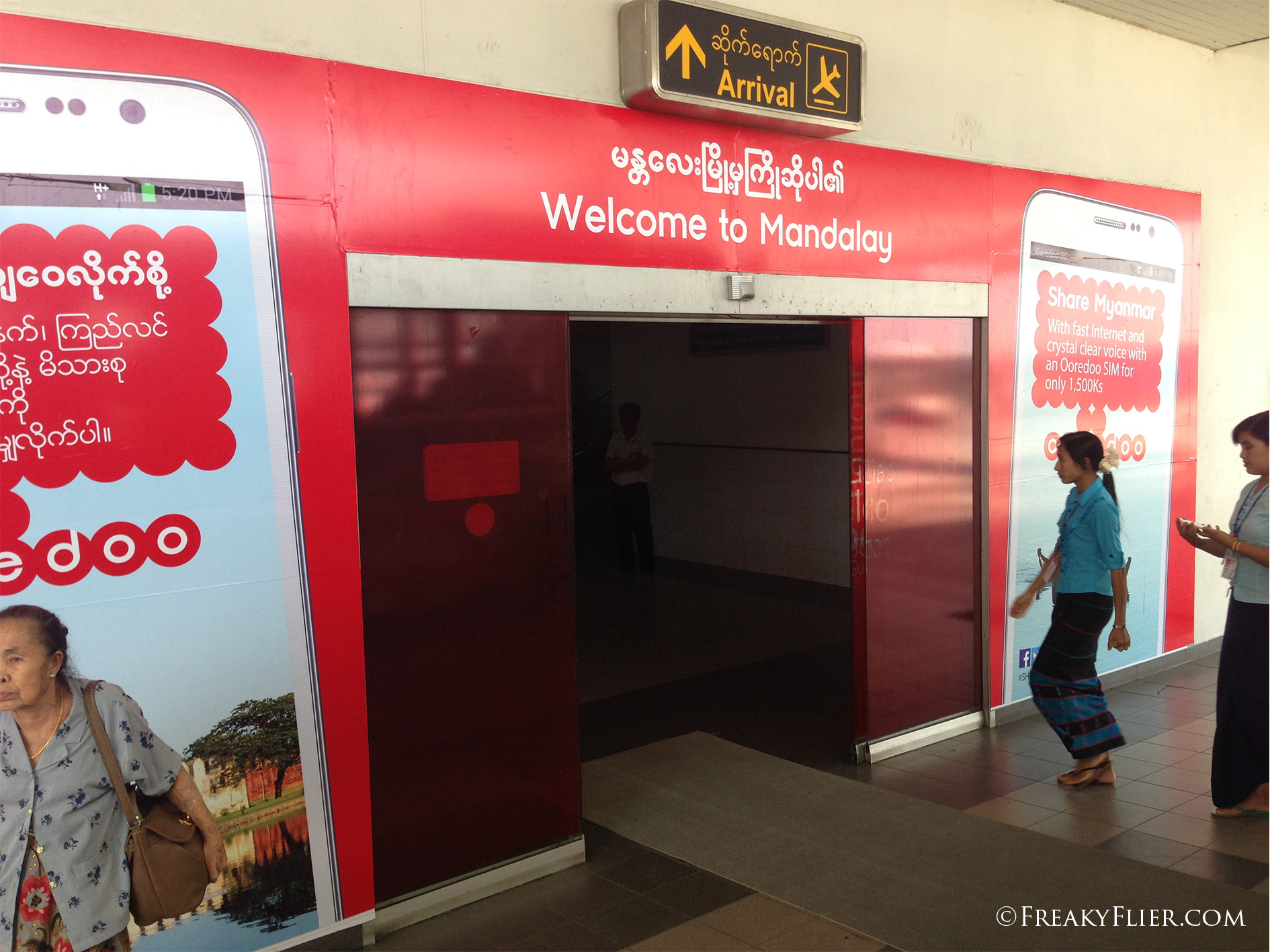 Our flight landed on time at 12:15pm at Mandalay International Airport and the aircraft didn’t use one of the 6 aerobridges but pulled up alongside the 10 year old terminal. We disembarked into the searing heat facing the runway and walked across the tarmac to the terminal which can cater for up to 1000 arrivals an hour.