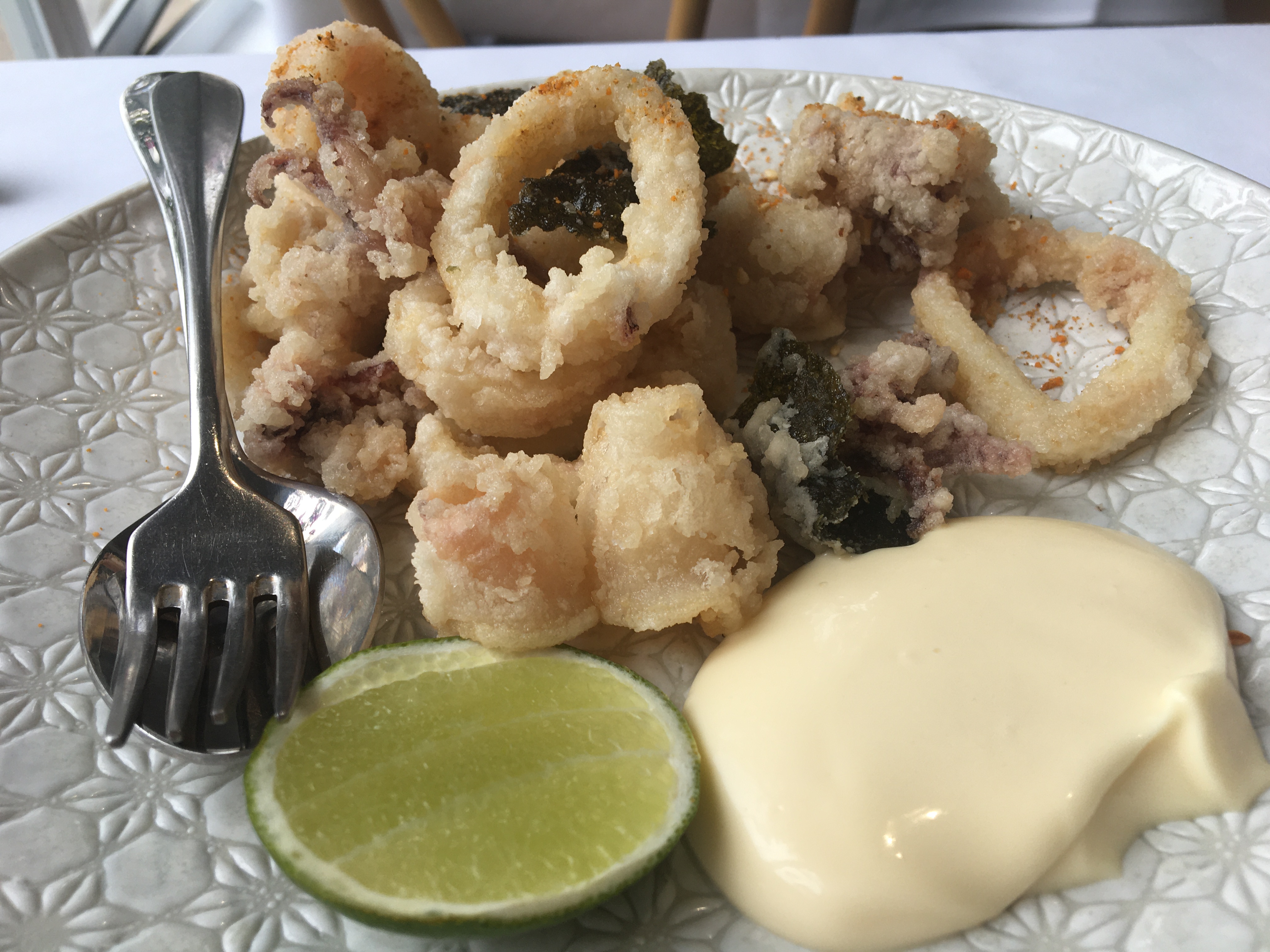 The lightly crumbed medley of seafood made us fork fight over every single piece.