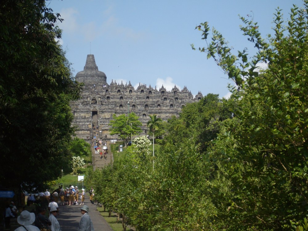 Borobudur is located around 38kms northwest of Yogyakarta, a large city (pop.2.5mil) on the main central Indonesian Island of Java. Yogyakarta, is approximately half way between the island of Bali and the capital of Indonesia, Jakarta, about a one and a quarter hour flight from either.