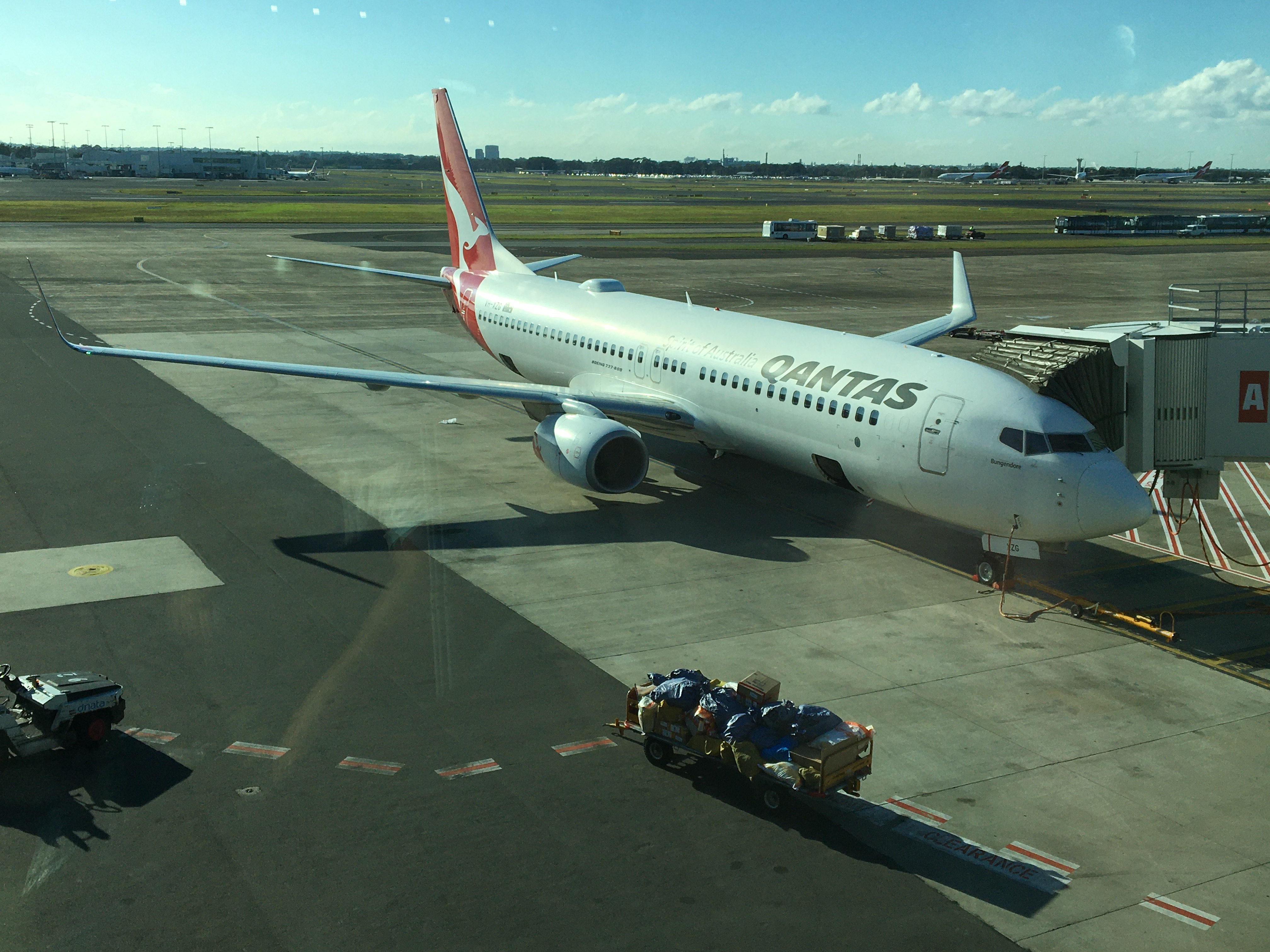 Todays flight is operated by an almost 8 year old 737-800 named Bungendore. Registered VH-XZG, she was delivered new to QANTAS in 2013. She has 12 business class seats and 162 economy class seats and there are only a spattering of seats free on this flight.