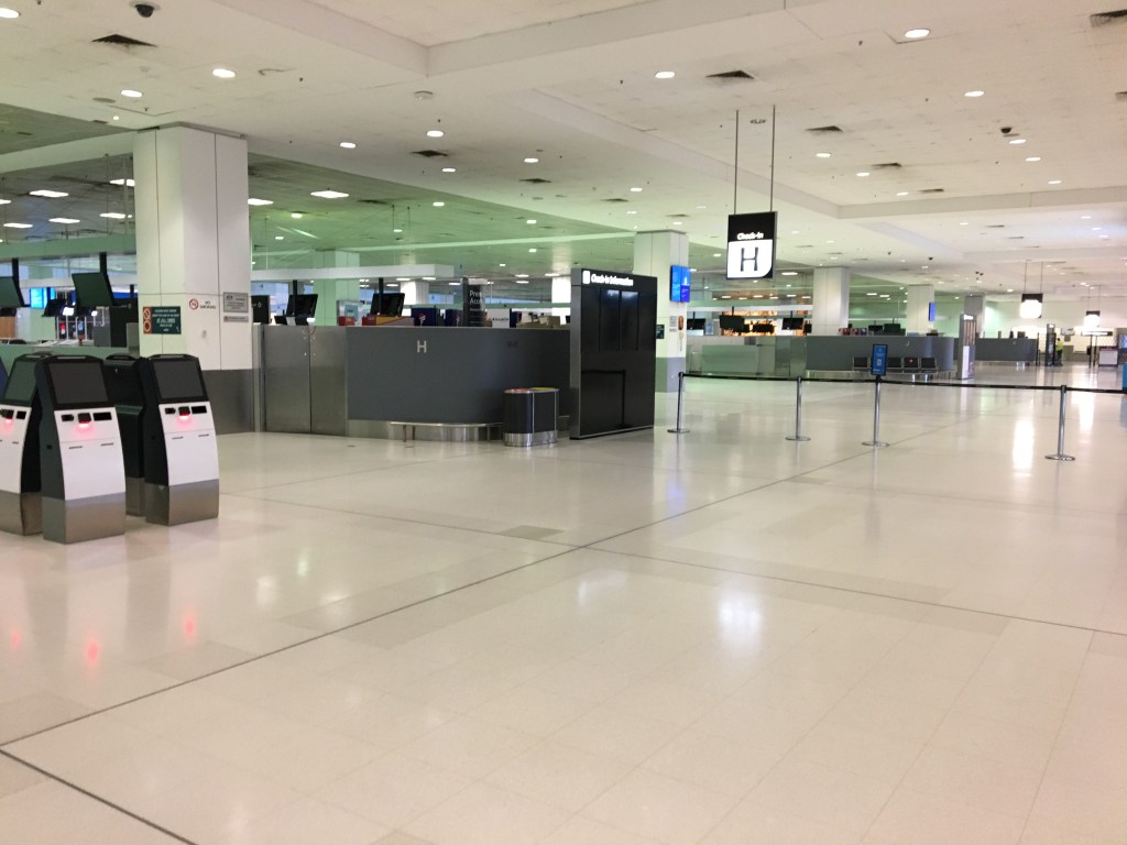The flights leave from the international terminal due to biosecurity travelling to an offshore island. International travel from Australia is still ‘outlawed’ and the international terminal is baron.