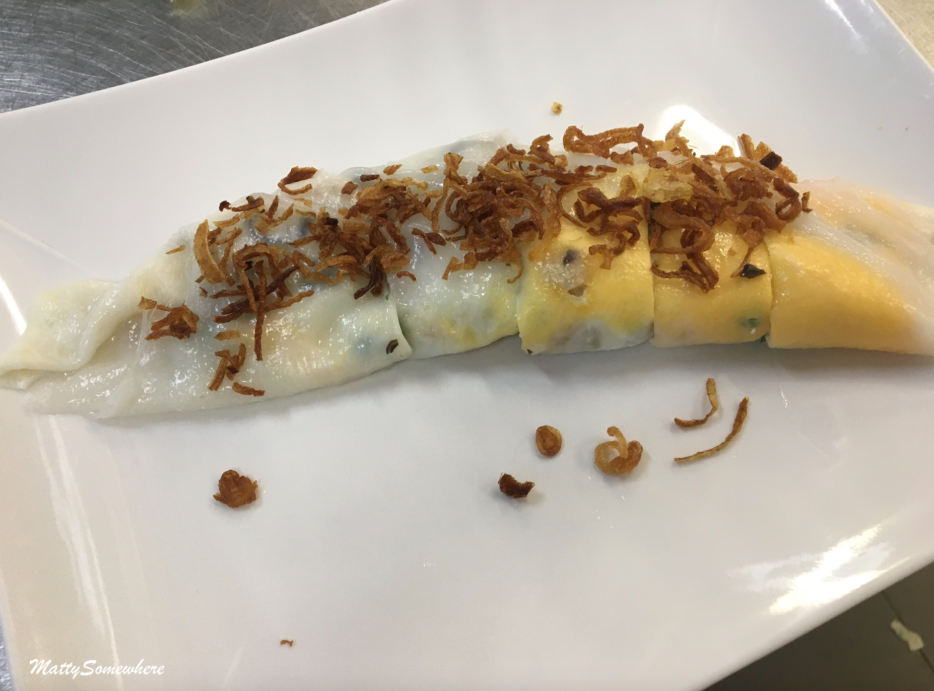 Bánh coûn chiên or steamed rice roll fried with egg is again another dish I am a fan of. The rice mixture is steamed, then rolled, chopped and flash fried, an egg then placed on top! My friend Jen isn’t such a fan as me, so I finish of a good helping of it!