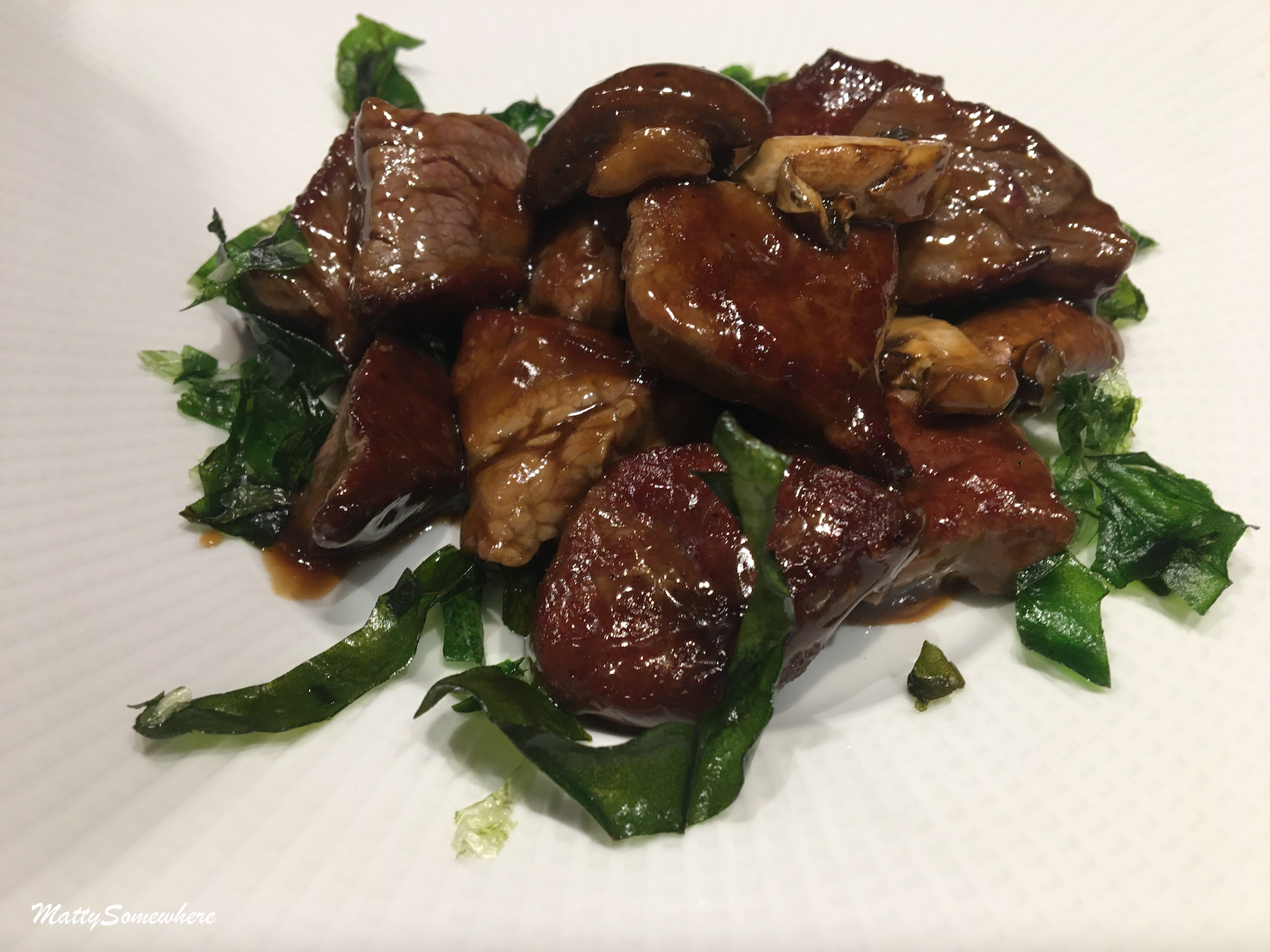 Jen orders the sauté eye fillet with superior soy sauce. The Black Angus eye fillet stir fried with mushrooms and superior soy sauce and seasoning is beautifully presented and when I try a bit it melts in your mouth. She enjoys it. A wonderful dish.