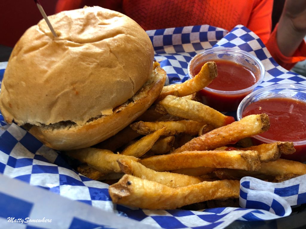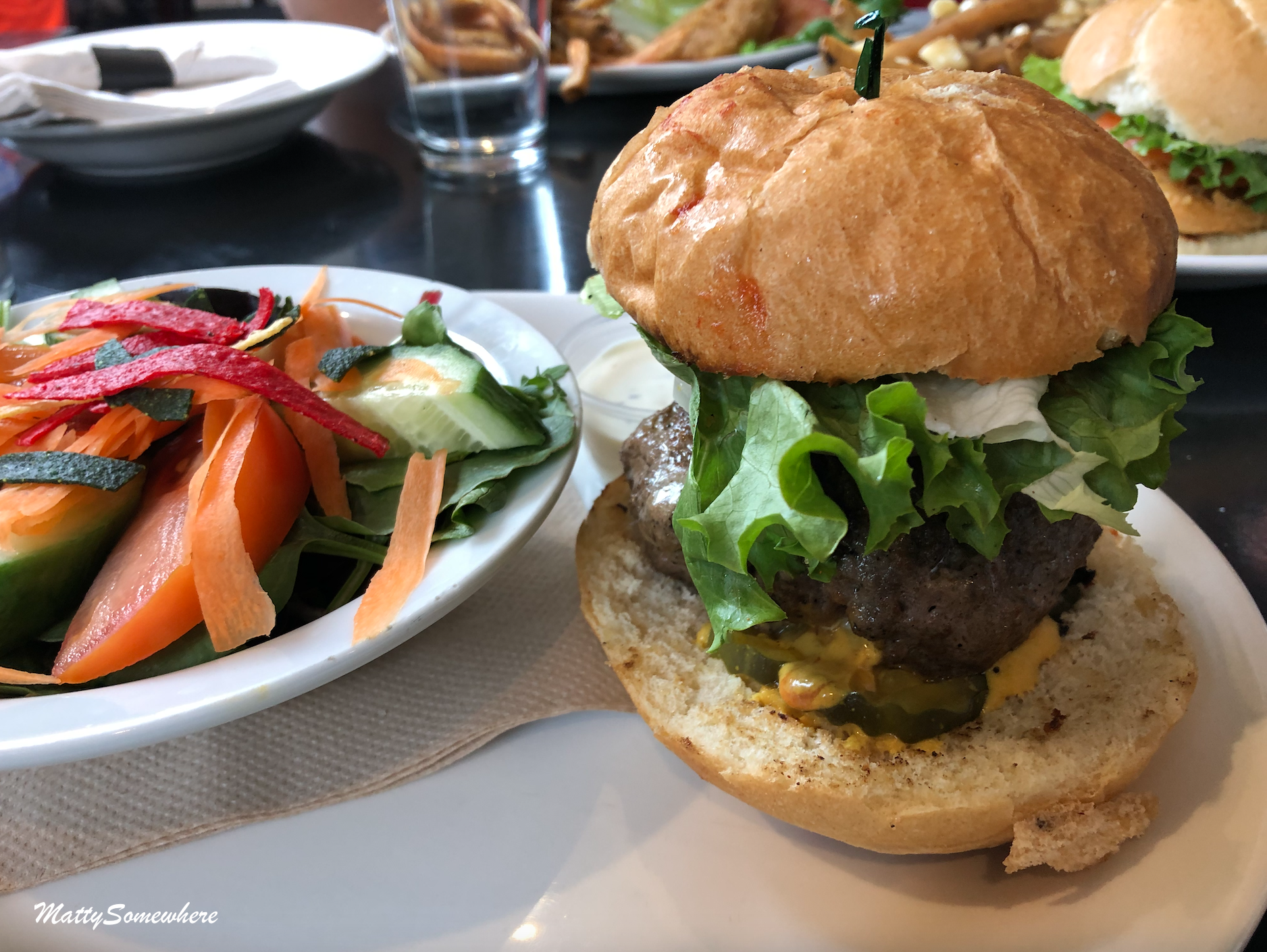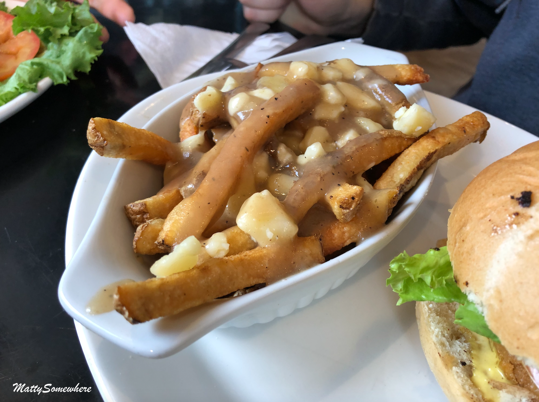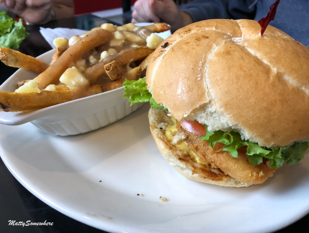 My cousin’s orders the fish burger, they seem to like it. As true Canadians, a side of poutine is ordered. Yum.