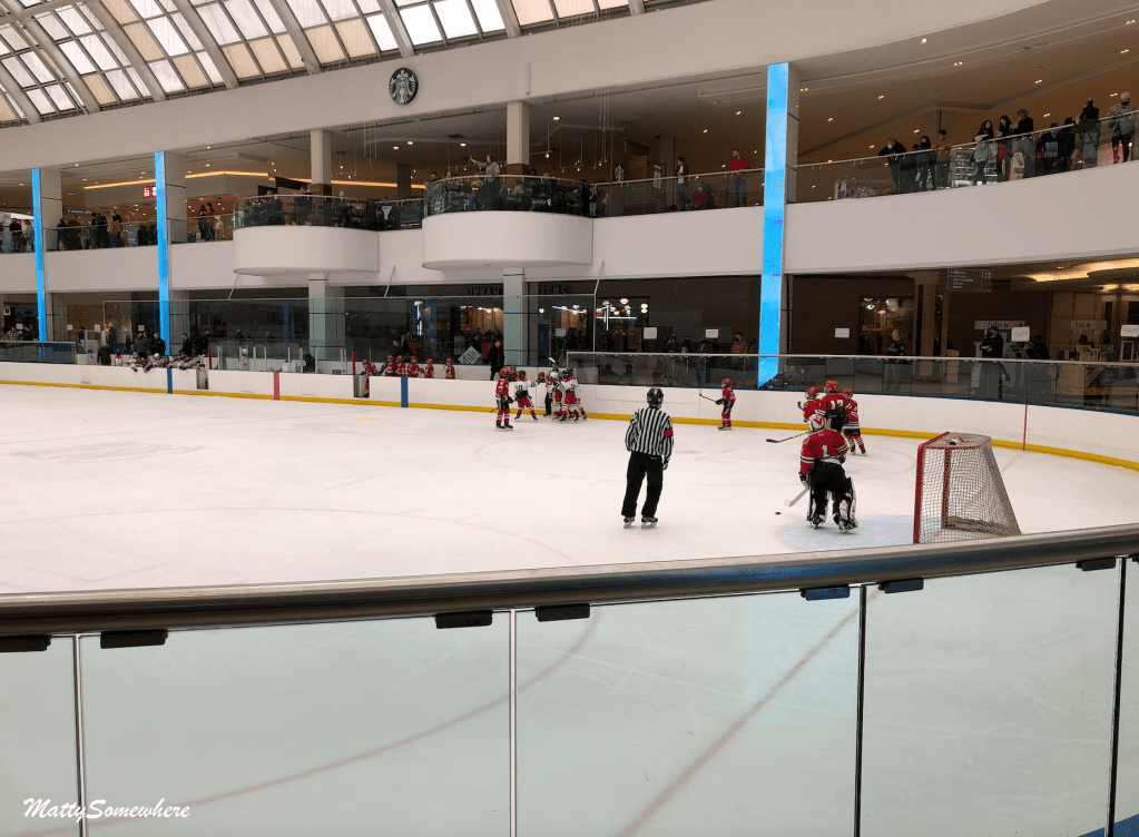 The ice skating rink is available for lessons or for hire, but that afternoon there is a hockey game happening.