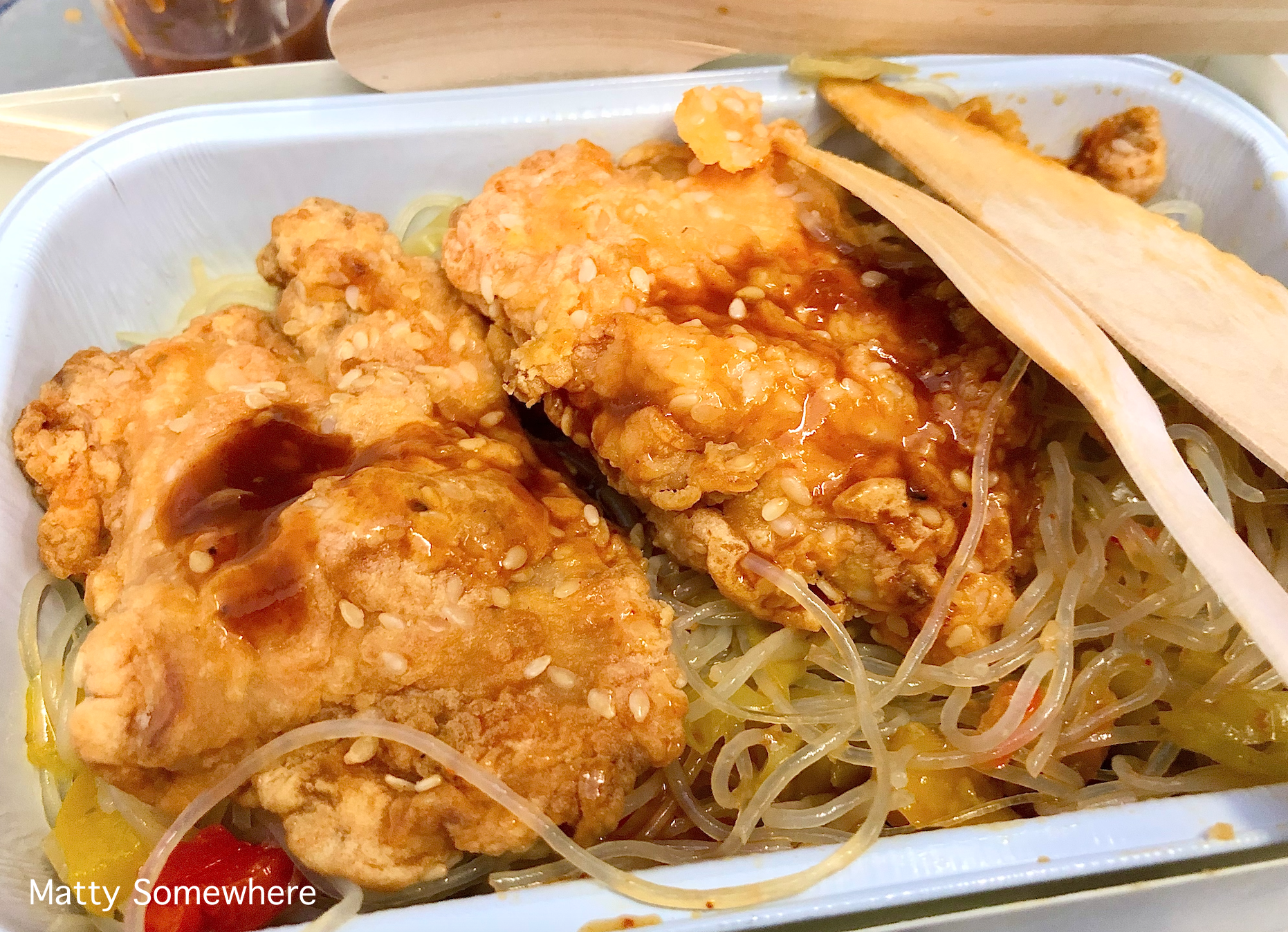 I reckon I hit the jackpot with my choice, the sesame chicken rice noodle salad. I am sure the others had a little bit of food envy. A choice of non-alcoholic drinks were available and I had a small coke.
