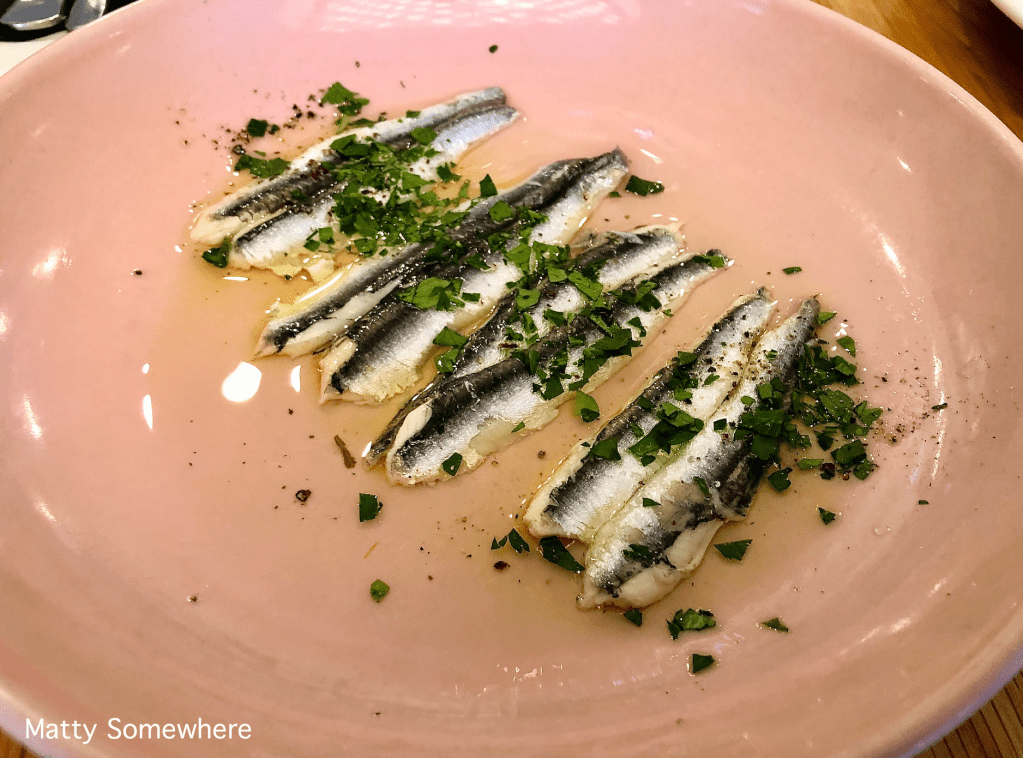 These are the perfect start to the meal. I’ve always been an anchovy fan and I adore white anchovies. If you haven’t had a white anchovy before, I recommend you do! They’re nothing like the brown ones most often found on pizzas, these are light yet firm and come served in a mild vinaigrette.