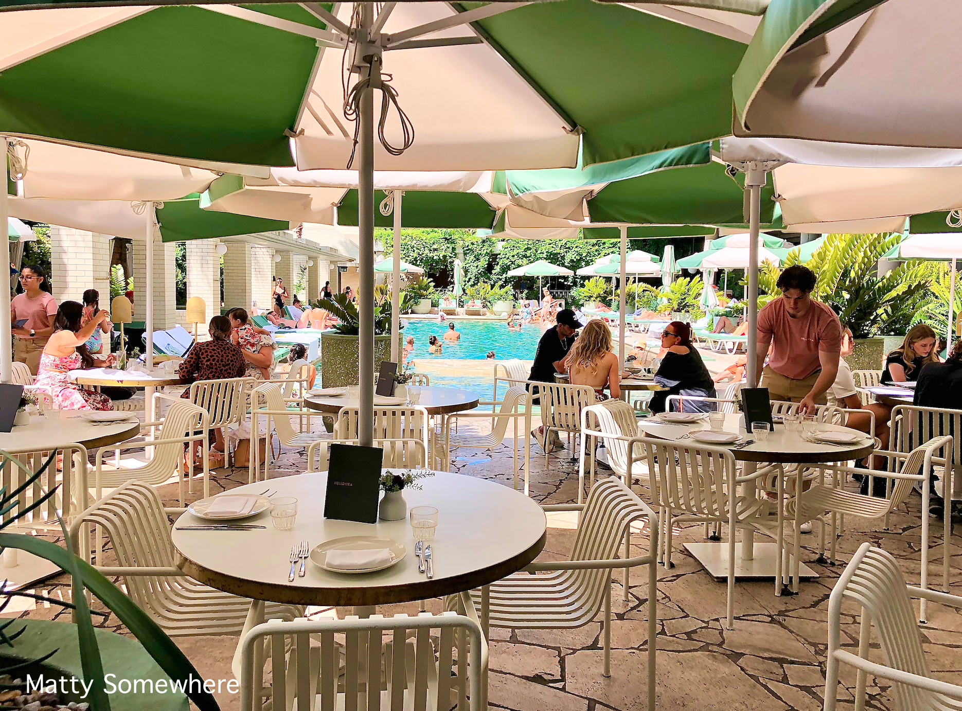 Hellenika is where the beautiful people go (I feel like an imposter…) and be seen. The outside area is relaxed chic, think California, or Palm Springs… OK, maybe Mykonos?… Some were enjoying their lunch around the pool while others froliced in the water.