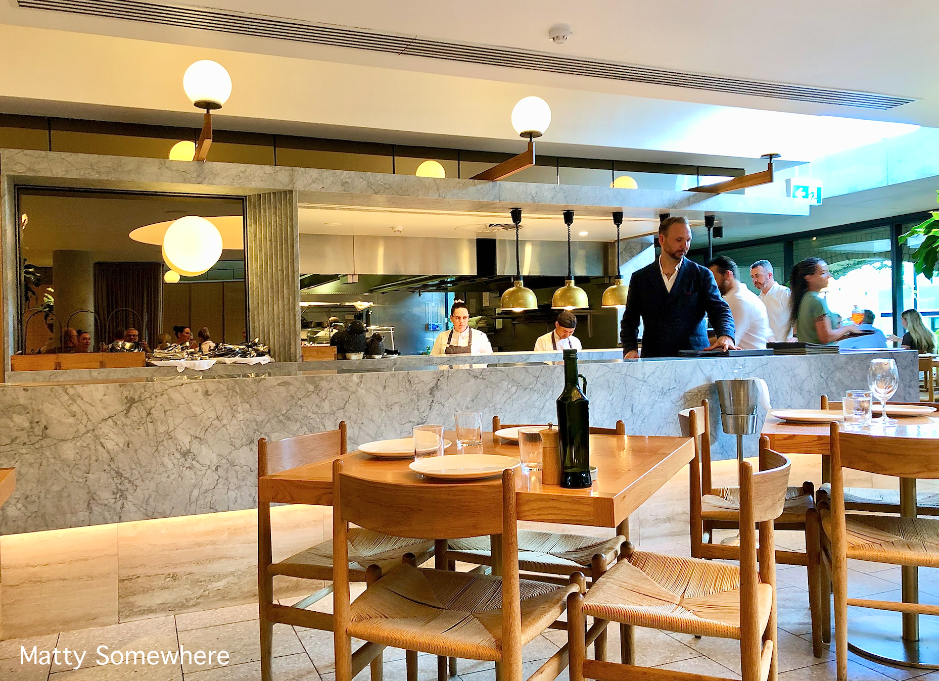 We are dining inside and we have a clear view of the hectic kitchen. The decor is easy and light and there see to be a lot of staff on for todays lunch service.