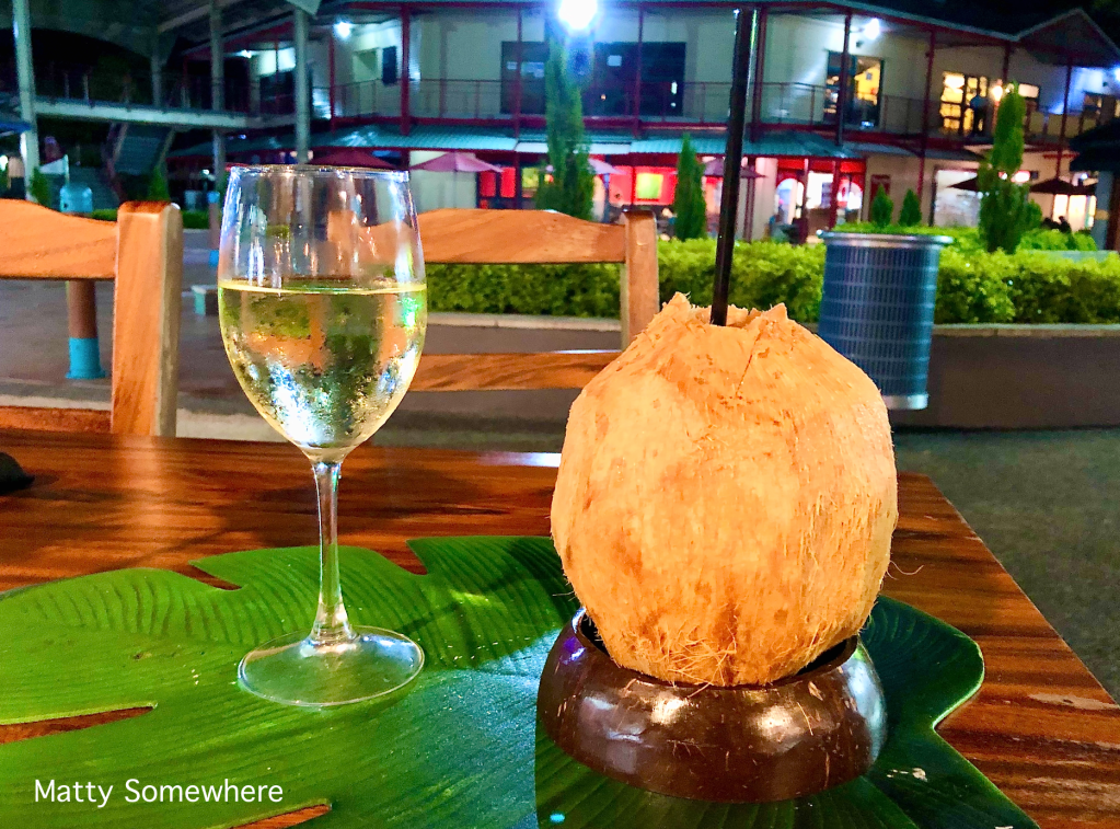 Saying or goodbyes to the lovely staff with promises that when we return to Fiji we will be back. We quickly stop at the Bilo Bar and have another drink while we wait for our driver. I have another wine and Colleen enjoyed another coconut cocktail, this time in the coconut shell!