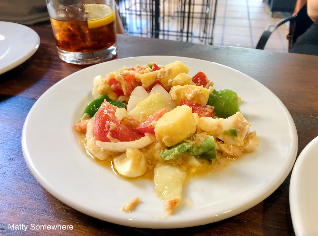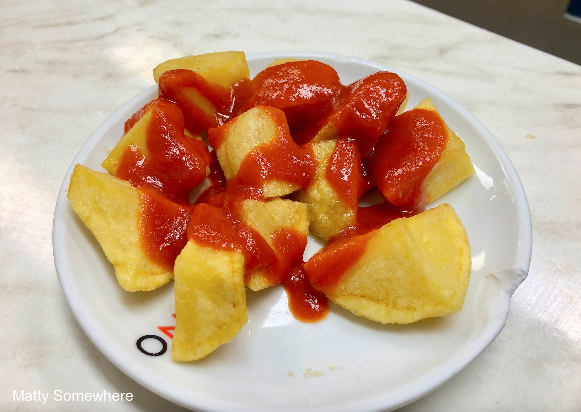 Patatas bravas are also served alongside the roll. So quintessentially Spain. The tapas of tapas. The potatoes are great, crispy yet fluffy, but its the sauce thats the hit here – like a big punch in the mouth hit – as hot as sriracha, but totally paprika flavoured. For someone who can handle maybe a two on the scoville scale, I find these not only hot and spicy but myself coming back for more…punches.