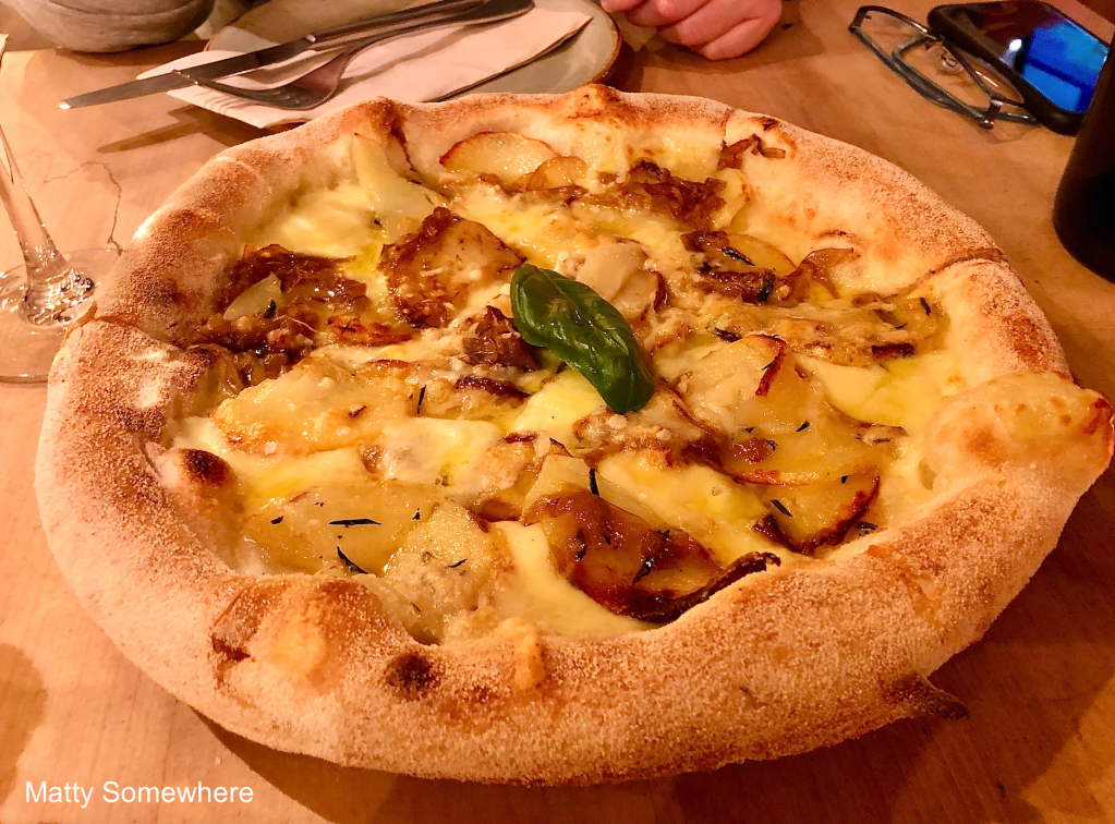 There are several pizza options that are broken into two categories, those with red bases and those with white, all of them cooked in a food fired oven. The one that stands out to us is something you don’t see often, the patata – a potato pizza on white base with caramelised onions, mozzarella and parmigiano. It’s piping hot when brought to the table, so we wait for it to cool a little. When I take my first bite, it’s very cheesy rich, but the caramelised onions mellow it down a notch.