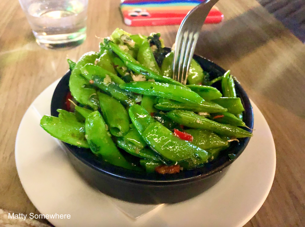 I typically stick to my usual, a chardonnay, as I’m not very adventurous with drinks. However, my friend Brett loves a good cocktail. Although the pornstar martini wasn’t on the regular cocktail menu, our friendly waiter was happy to oblige when we asked for it. The pornstar martini features vanilla vodka, passionfruit liqueur, lime juice, and sugar syrup. In this version, the prosecco is served on the side in a shot glass. Brett mentioned that he enjoyed the cocktail, I wish I had a sip.