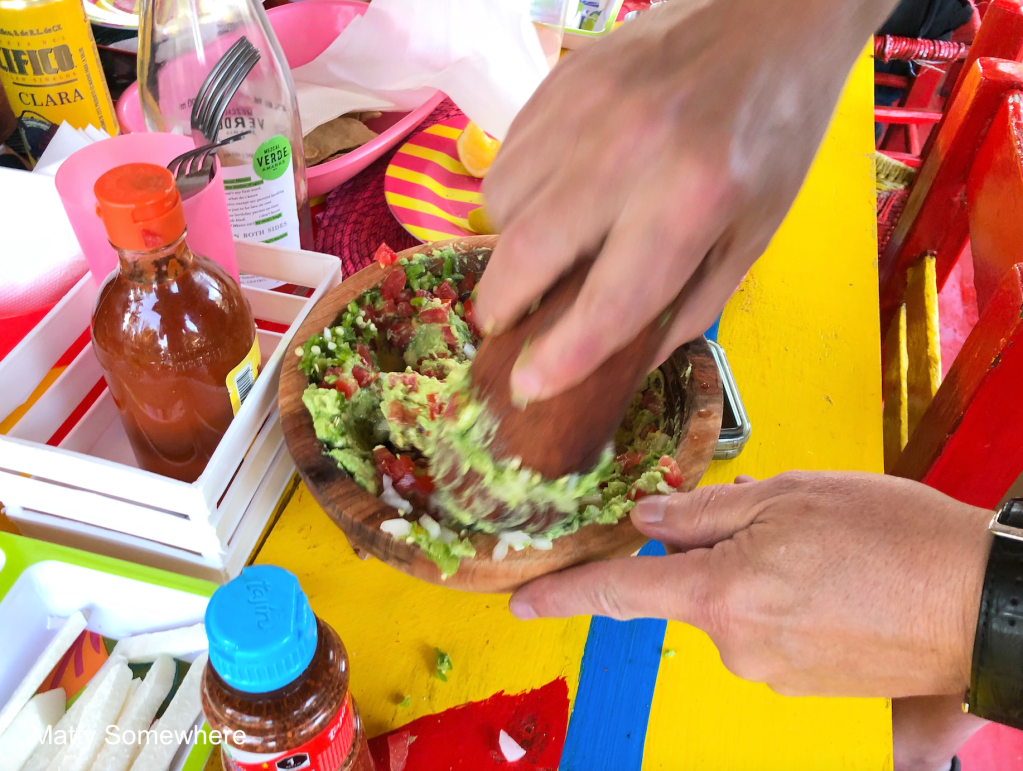 With fresh avocado, tomato, chilli, salt, pepper, red onion, and limes, Jim crafts the absolute best guac. Unfortunately, despite Manuel the Judge’s taste test, we aren’t declared the winners. Jim and I concur; it’s all because we lack garlic.