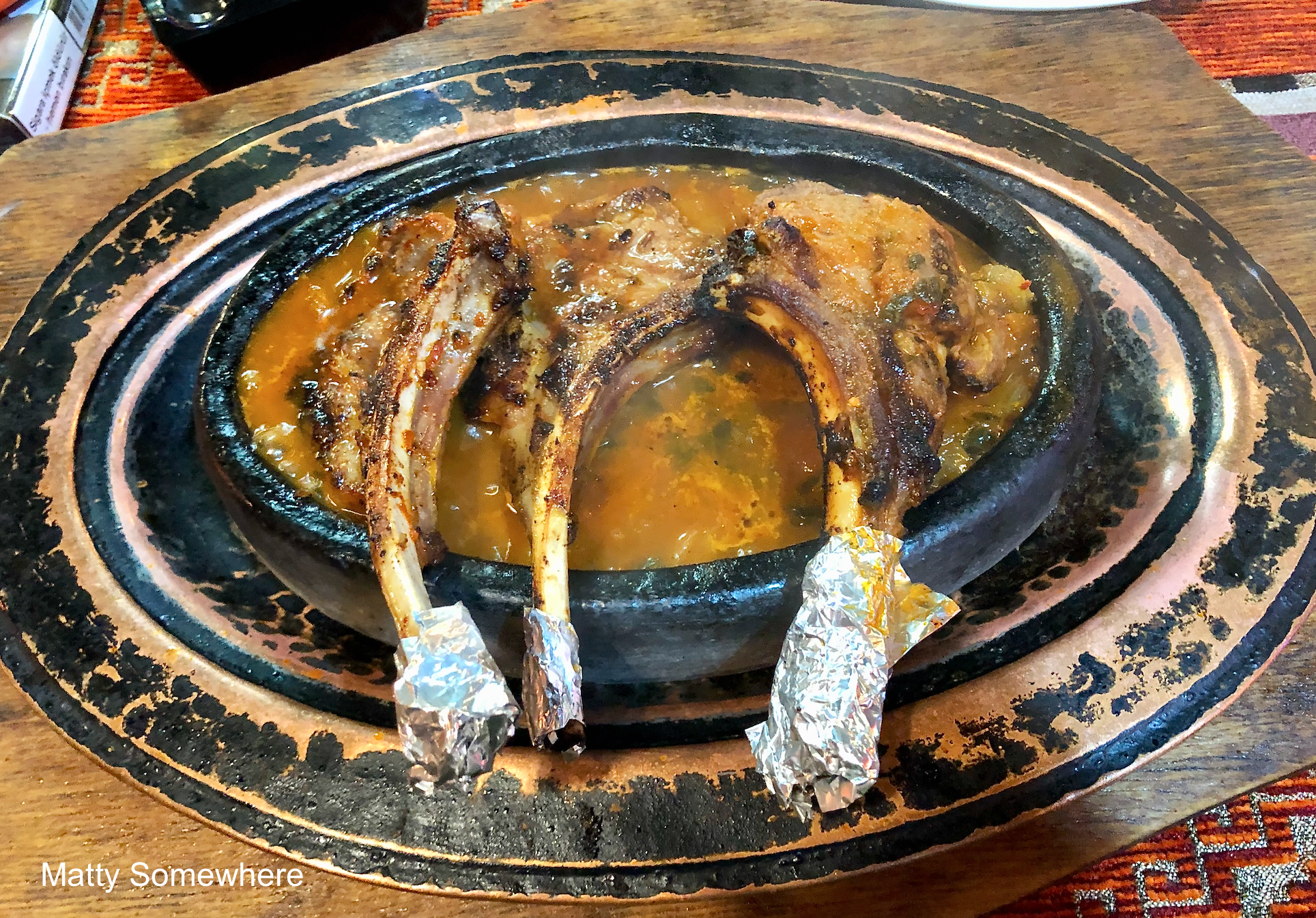 I go for the Ottoman Plate. It is described as lamb cutlet, onion, tomato, spinach, garlic served in a casserole dish with potato and rice.