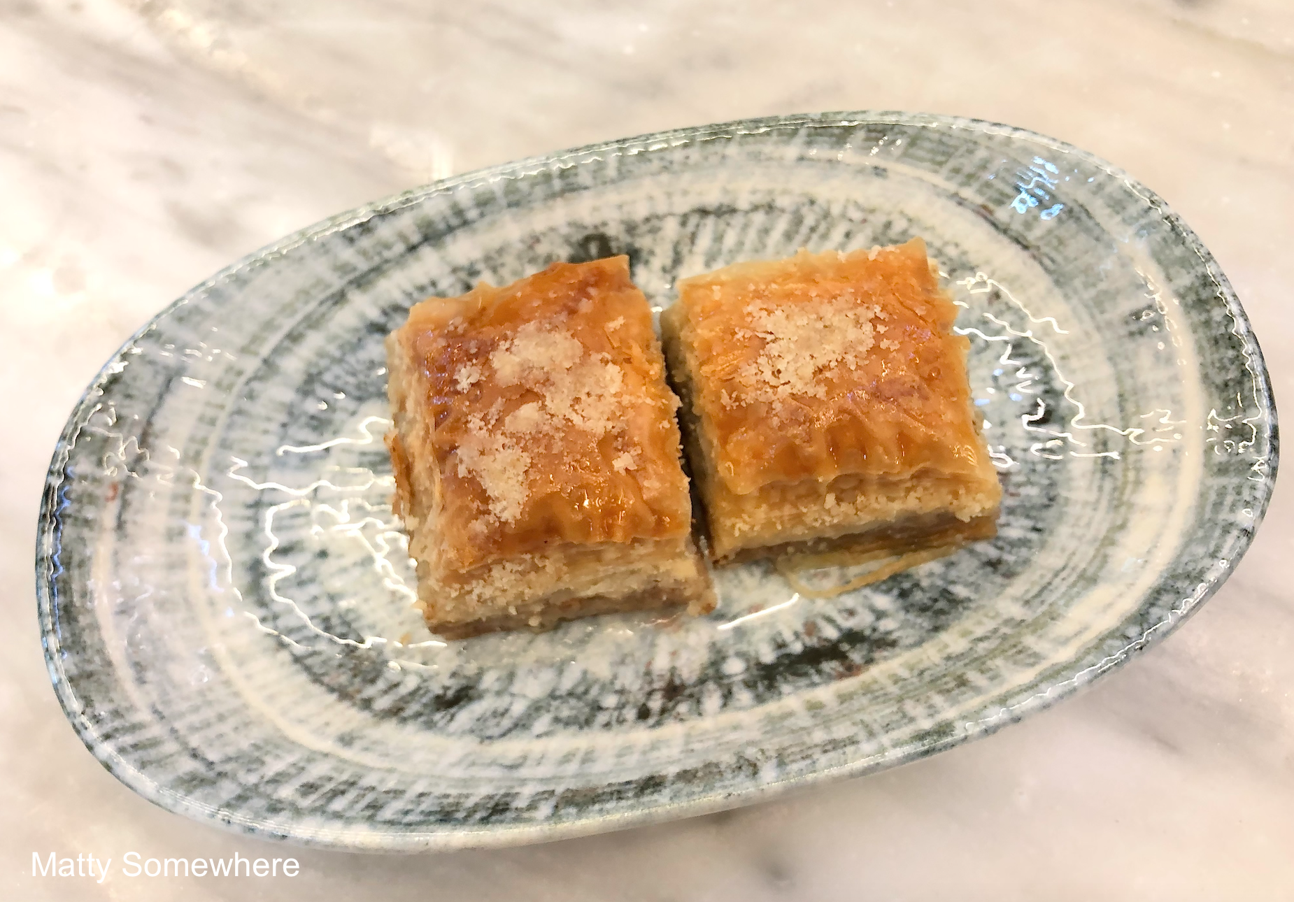 I got for the walnut baklava as opposed to pistachio, it’s super sweet, very sticky, but sugary good.