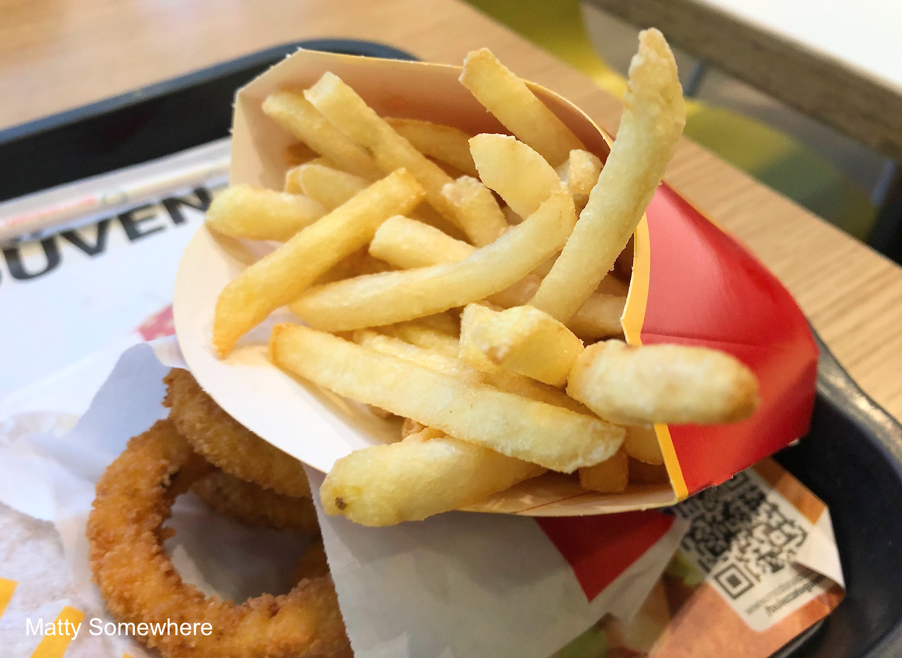 My ordering experience was lacklustre. With just myself and another couple in the store, the cold young staff member served the fries and burger immediately once ready. However, he realised they didn’t have onion rings ready and fetched them from the freezer, leaving my burger and fries to grow colder. When the onion rings were done, the tray was served, and touching the burger revealed it was stone cold. Mentioning this, there was a sudden lack of English comprehension. Mistakes happen, but couldn’t they at least serve me some hot fries? At least the price is good at around AU$12.04!