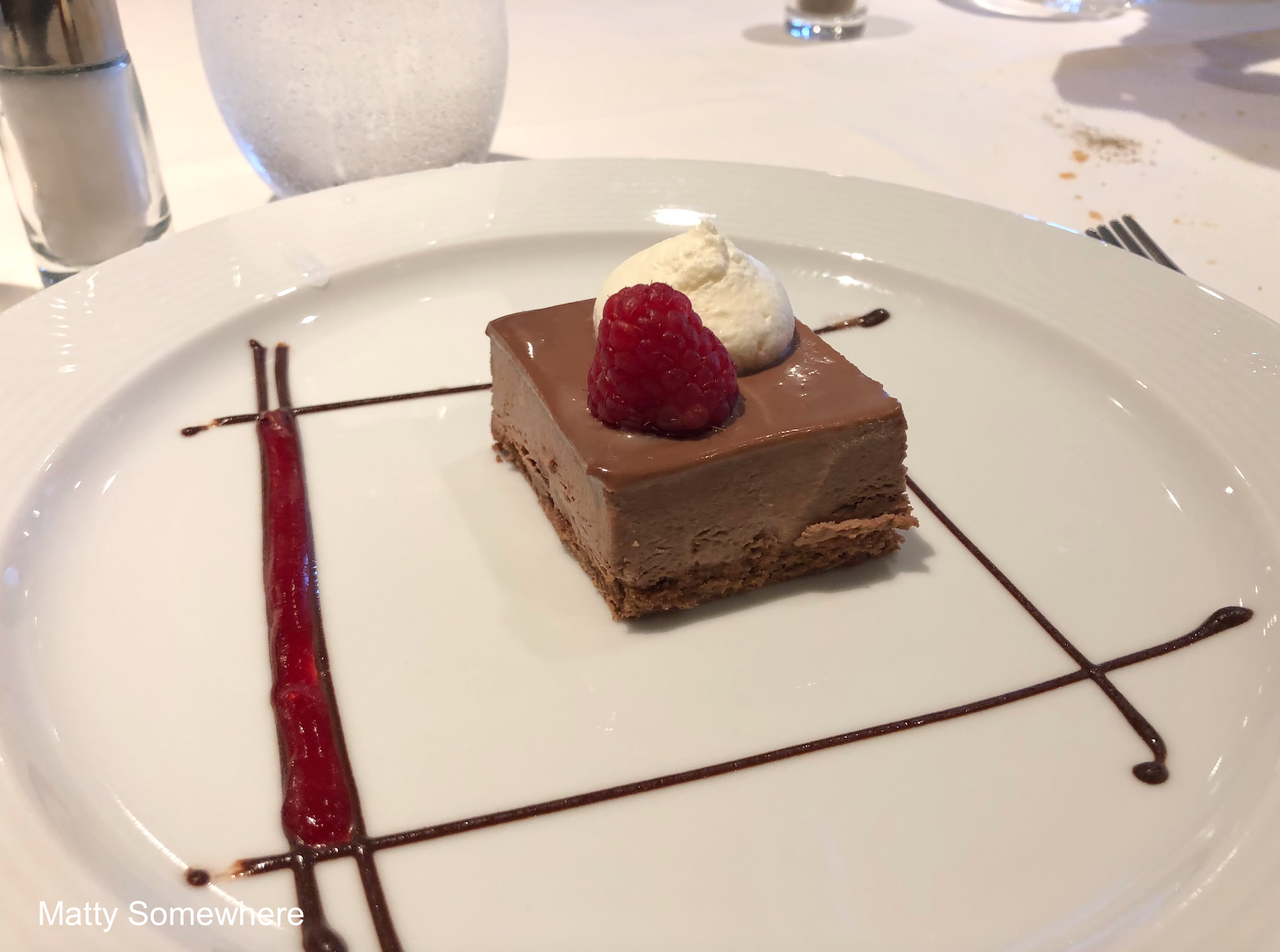 The luxurious finale was a chocolate marquise, a velvety mousse-like chocolate treat. The decadent richness is expertly balanced by a smudge of raspberry coulis, elevating the dessert to stardom.