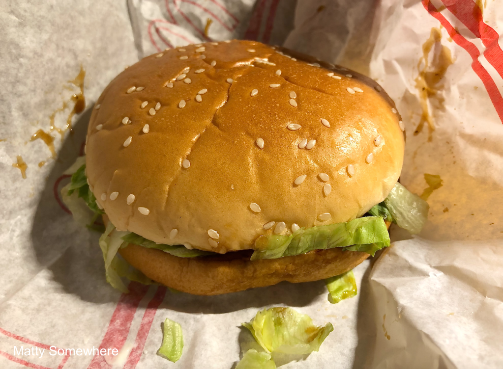 I really love this burger, the sweetness of the teriyaki works perfectly with the pork patty. It reminds me of a McRib when they have them in Australia – although I know they are two different sauces.