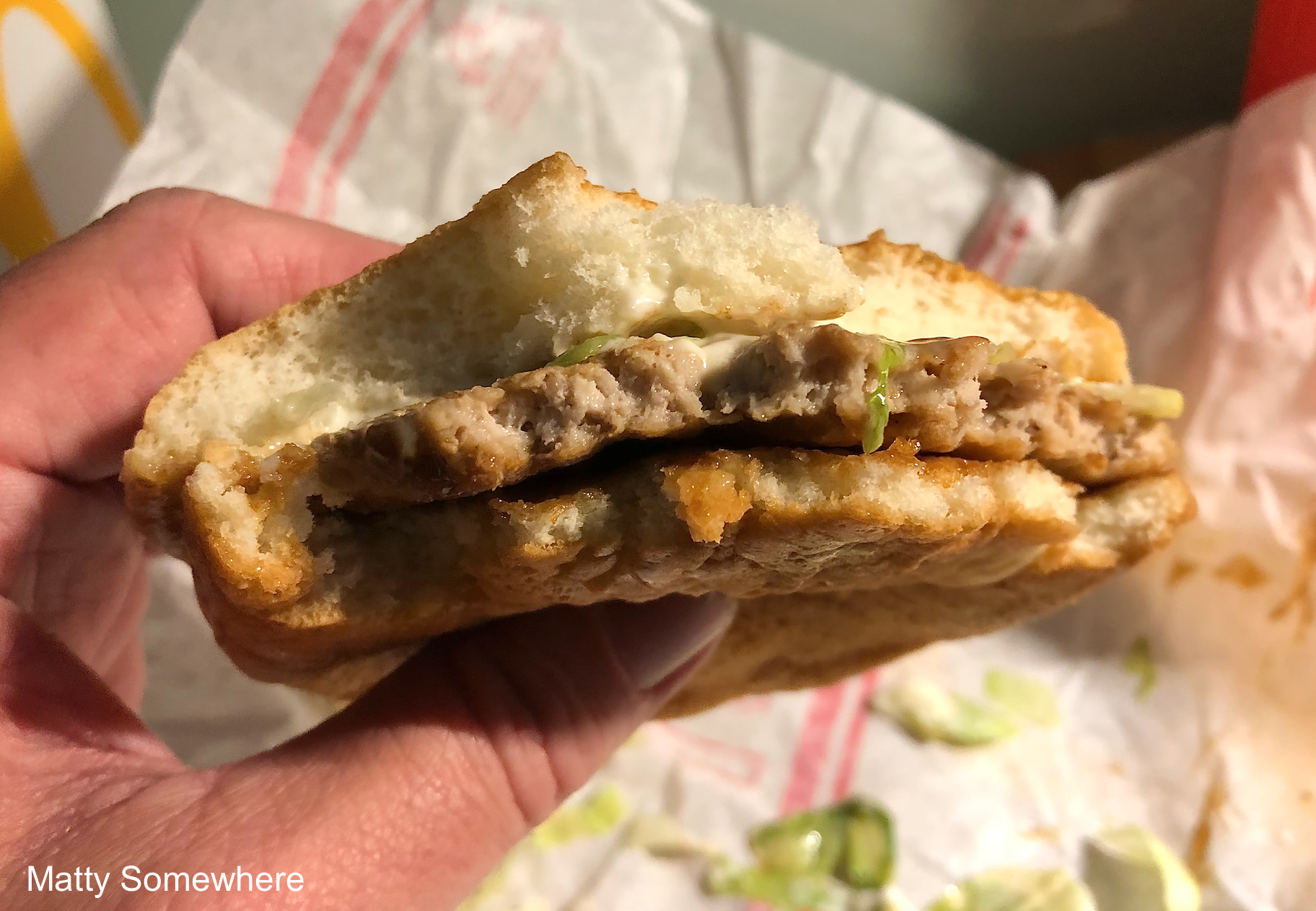 I really love this burger, the sweetness of the teriyaki works perfectly with the pork patty. It reminds me of a McRib when they have them in Australia – although I know they are two different sauces.