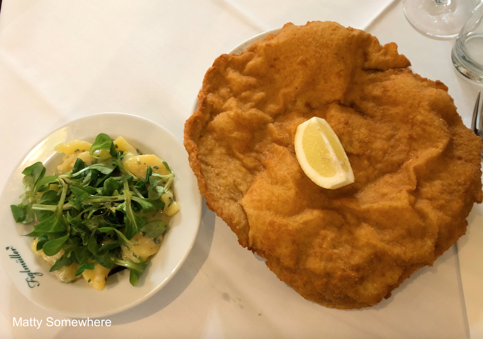 As I leave the stunning Schönbrunn Palace I call an Uber to take me to Figlmüller’s (no I didn’t take a horse and cart!) I pop the address into the app and remember there are two restaurants, so I check my booking as to which restaurant it is and BAM! I realise the booking was for the day before! I am slightly freaking out as I have wanted to visit this restaurant for years!