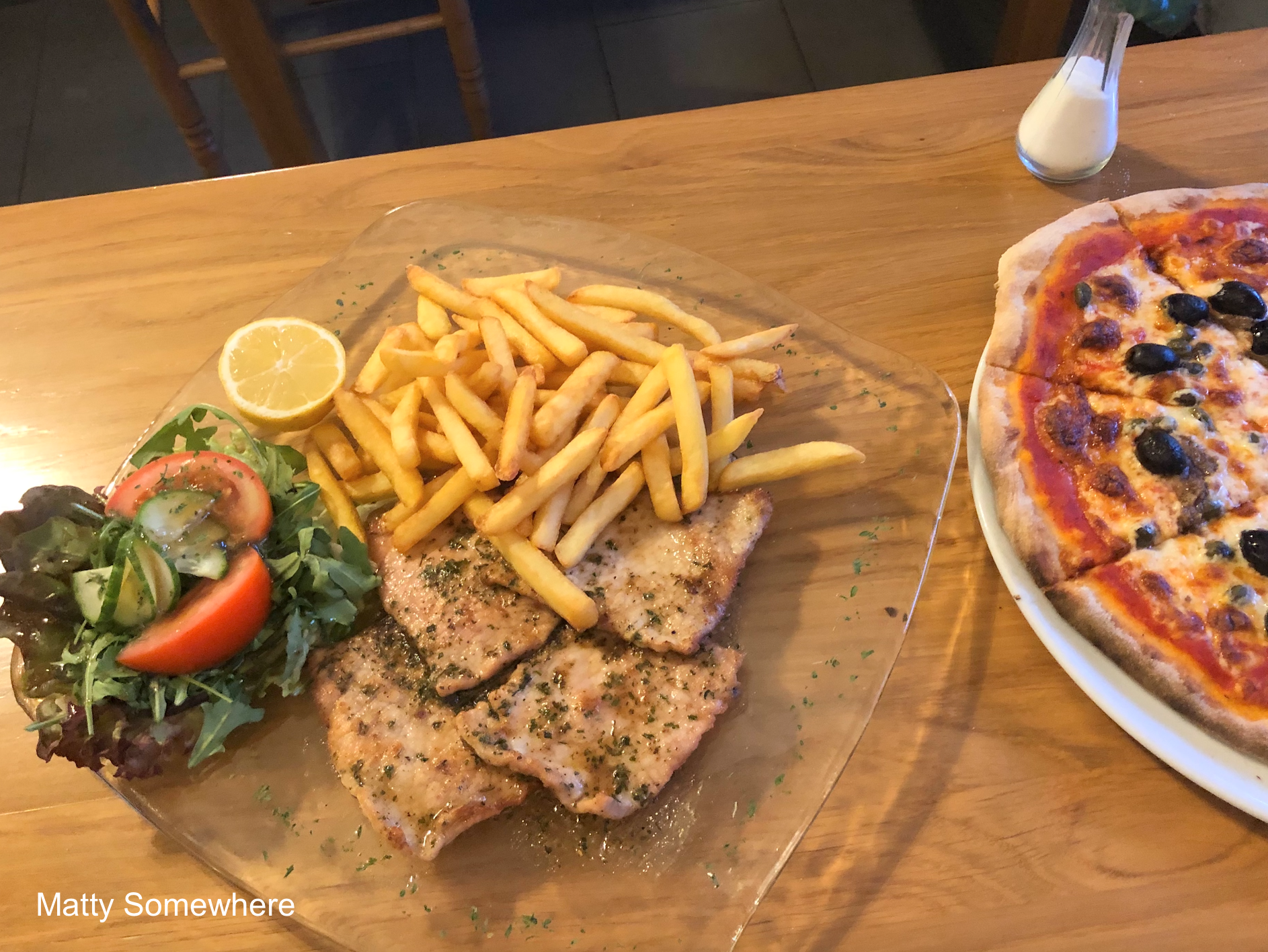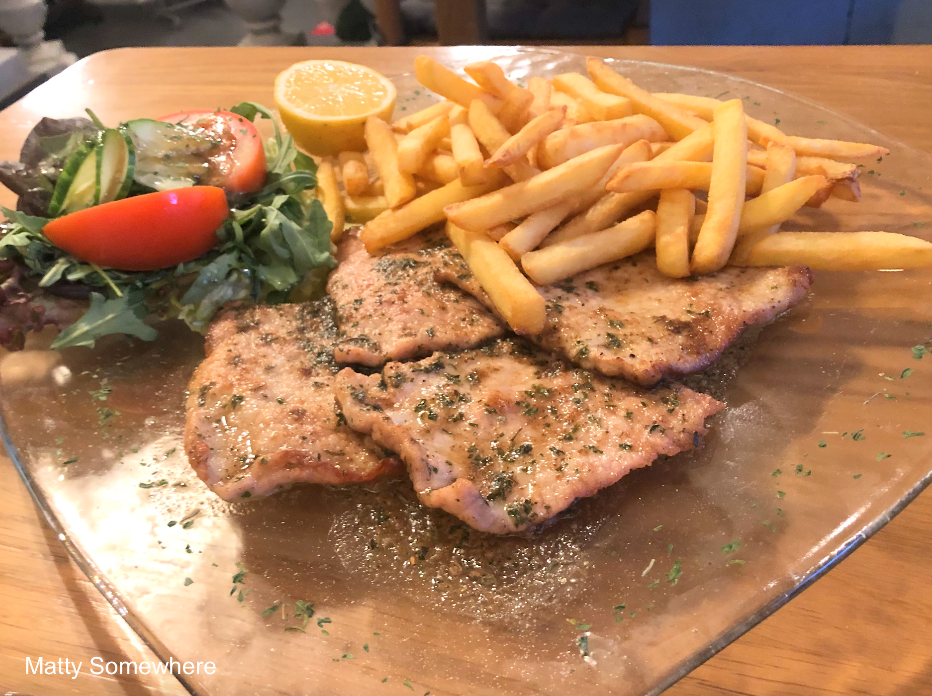 Indulging in the exquisite flavours of veal scallopini with zesty lemon, I savour each bite infused with fragrant herbs. A symphony of taste dances on my palate, harmonising tender veal with tangy citrus notes. Culinary bliss in every mouthful, a masterpiece that delights the senses. I’ll tell you what is also really good, dipping those fries in to the herbacious-lemony-garlic sauce.