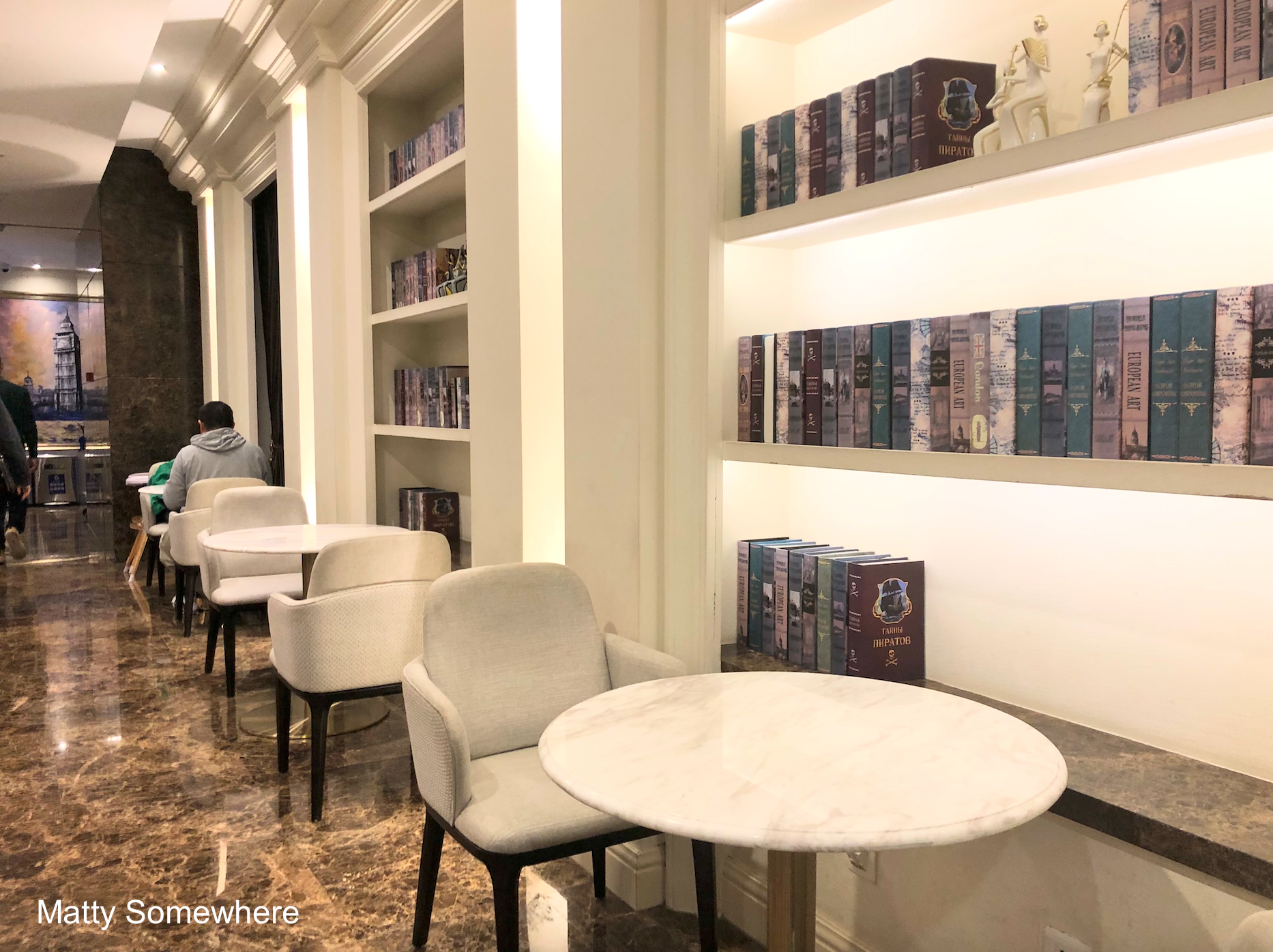 The space is quite inviting with a distinctly European vibe, combining charm and sophistication in equal measure. Warm lighting, cozy seating arrangements, and elegant architectural touches create a welcoming atmosphere reminiscent of a classic café in Paris or a stylish bistro in Rome. The attention to detail, from the marble tables and flooring, to the curated artwork, enhances the overall aesthetic, making it a perfect spot to relax, socialise, or simply enjoy the ambience.