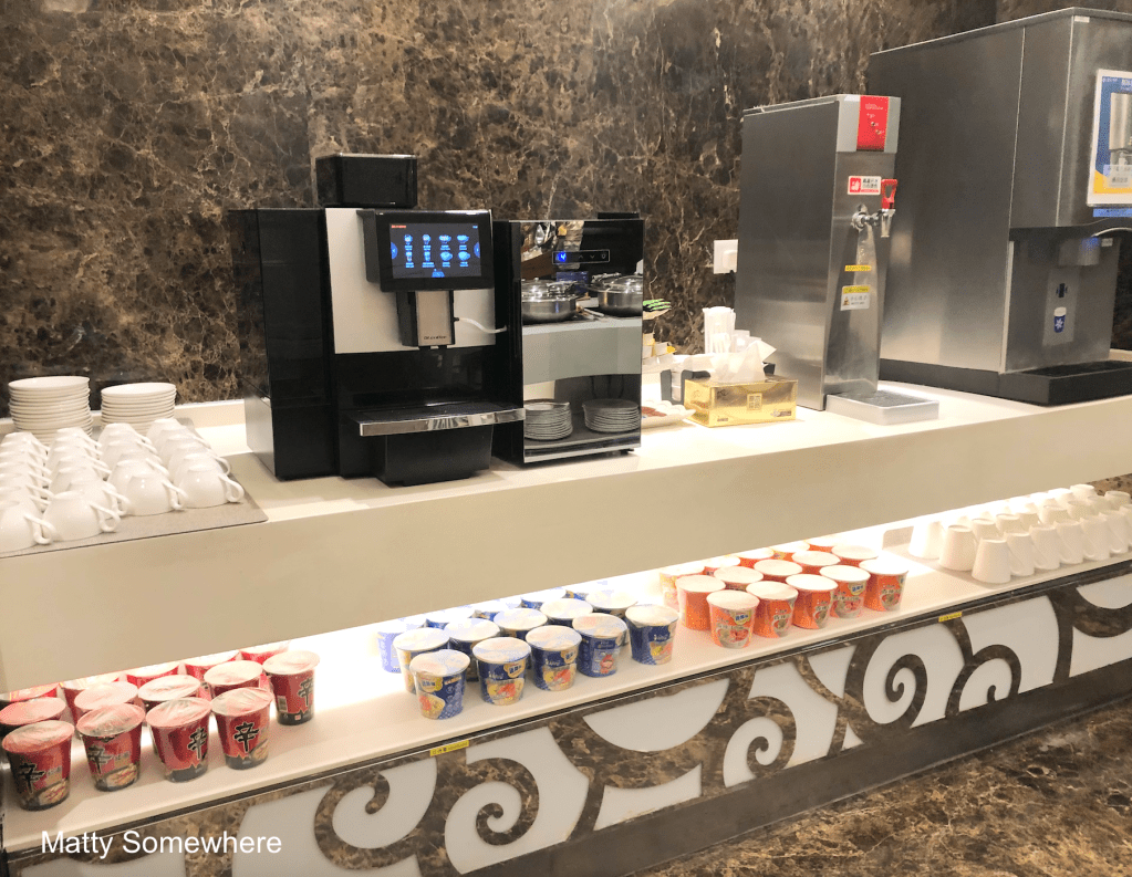 Of course, no airport lounge in Asia would be complete without a selection of pot noodles—a staple comfort food for many travellers. Several types are available, offering quick and satisfying options for those craving a warm, familiar snack.