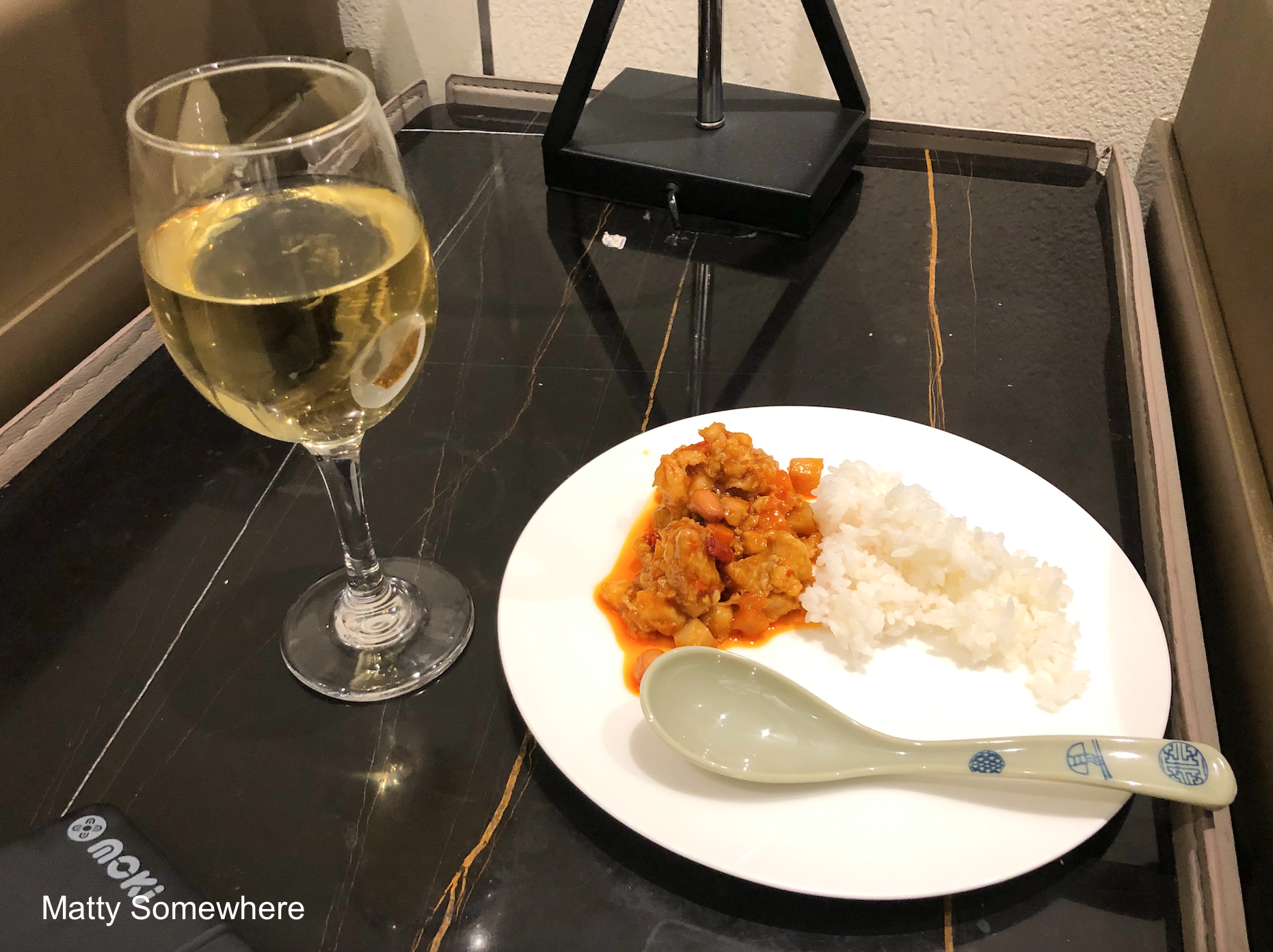 In addition, there are a few hot dishes available that immediately catch the eye, adding a touch of local flavour to the lounge’s offerings. Notable among them are the sweet and sour pork with pineapple, I gather offering a balance of tangy and fruity notes, but it’s the classic Kung Pao Chicken, known for its spicy, savoury kick with a hint of crunch from peanuts and vegetables that I go for.