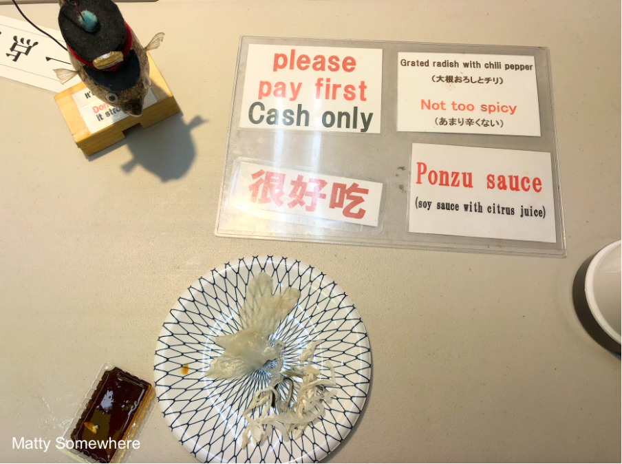 Do you ever have that feeling where you suddenly think, should I really be doing this? Kind of like the first time you went skydiving, bungee jumping or zip lining (I’ve only done one of these things and probably won’t do the others…Can you guess which one I have done?). I am, however, a little adventurous with food while travelling, so when in Japan, I decided to try some fugu sashimi.