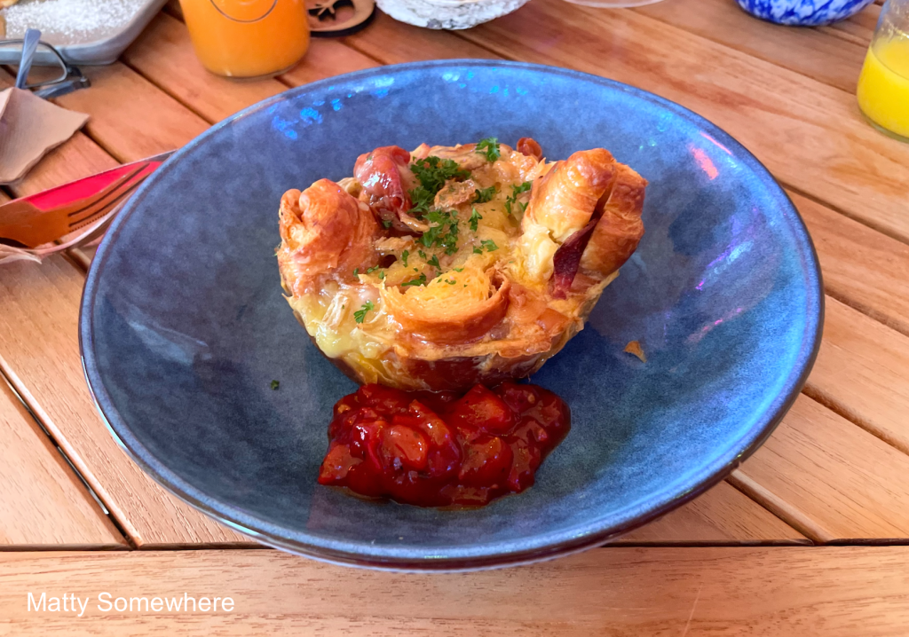 One morning, we head to the Old Butcher Shop Café for breakfast. While Colleen and Helen indulge in waffles topped with fresh fruit, I go for the savoury option, a baked croissant filled with ham and cheese, served with a side of fresh berry compote. It’s a touch sweet and a bit fancy for my usual morning tastes, but a delicious dish all the same. We enjoy our breakfast with freshly squeezed juice for me and coffees for the ladies.