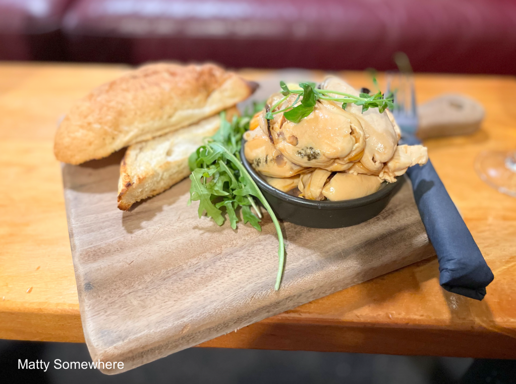 On our second evening we dine in the main bar and I order the marinated mussels. I was expecting something in the shell with a marinara sauce, but these mussels were a delightful surprise. It was Colleen who reminded me that and marinara and marinated are two very different things… Served cold, they were absolutely massive, each one nearly the size of my fist! Tender and full of flavour, they turned out to be one of the most memorable dishes of the trip, despite the unexpected presentation.