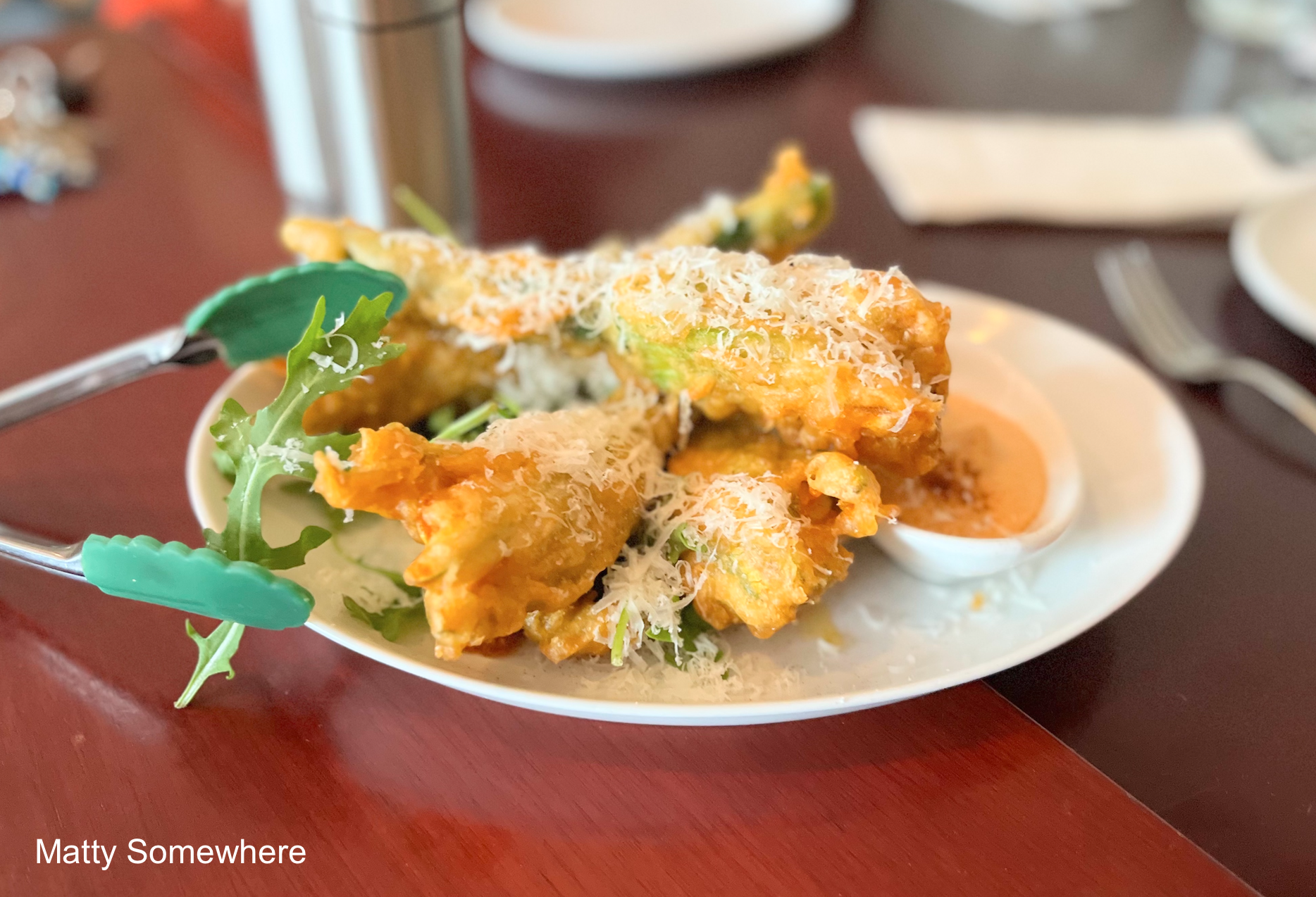 We decided to share a starter of beer battered zucchini flowers stuffed with four cheeses, and they were seriously delicious. The cheese filling was mild but tasty, the batter perfectly crisp, and with only four to share between the three of us, the last one started a playful battle.