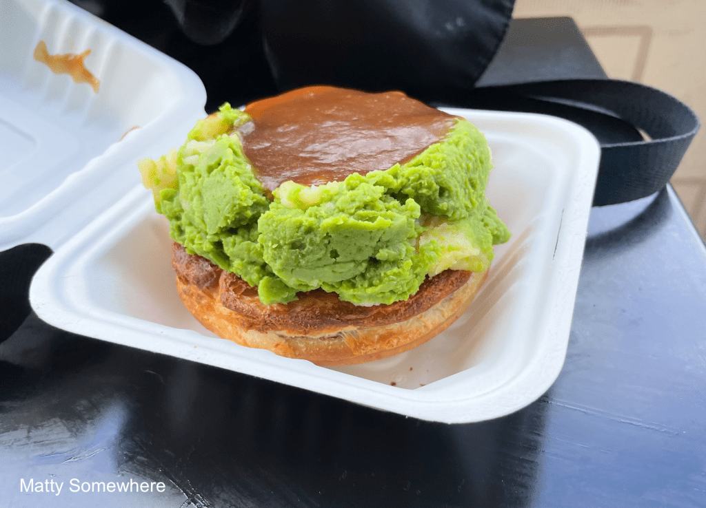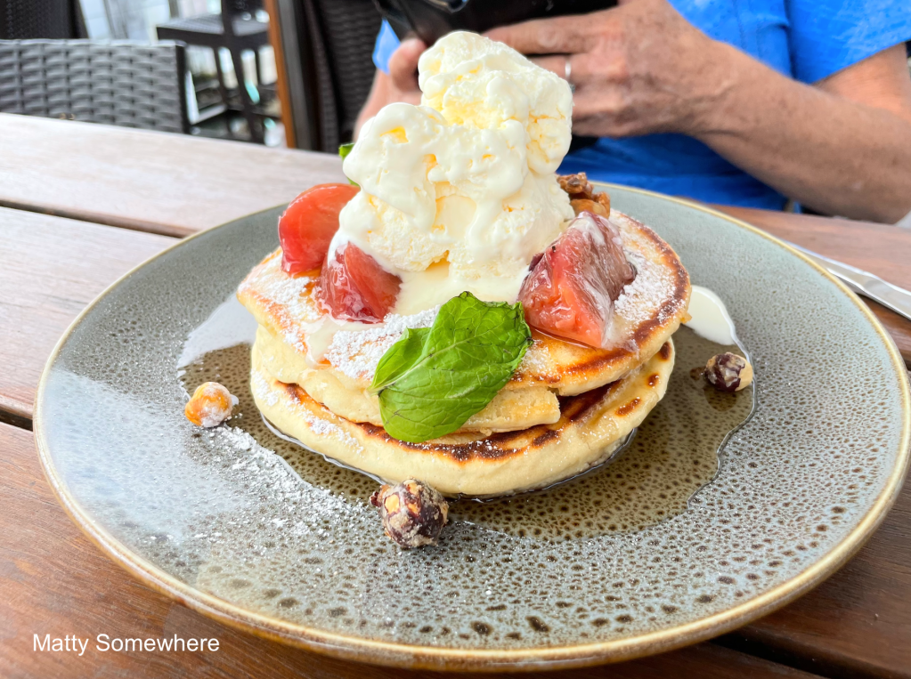 We stop for lunch at the Kiama Pie Shop. Shanny orders the off-menu special, the famous Blowhole Pie. It’s a classic meat pie topped with mushy peas and smothered in gravy, practically a full meal on its own. She absolutely loves it!
