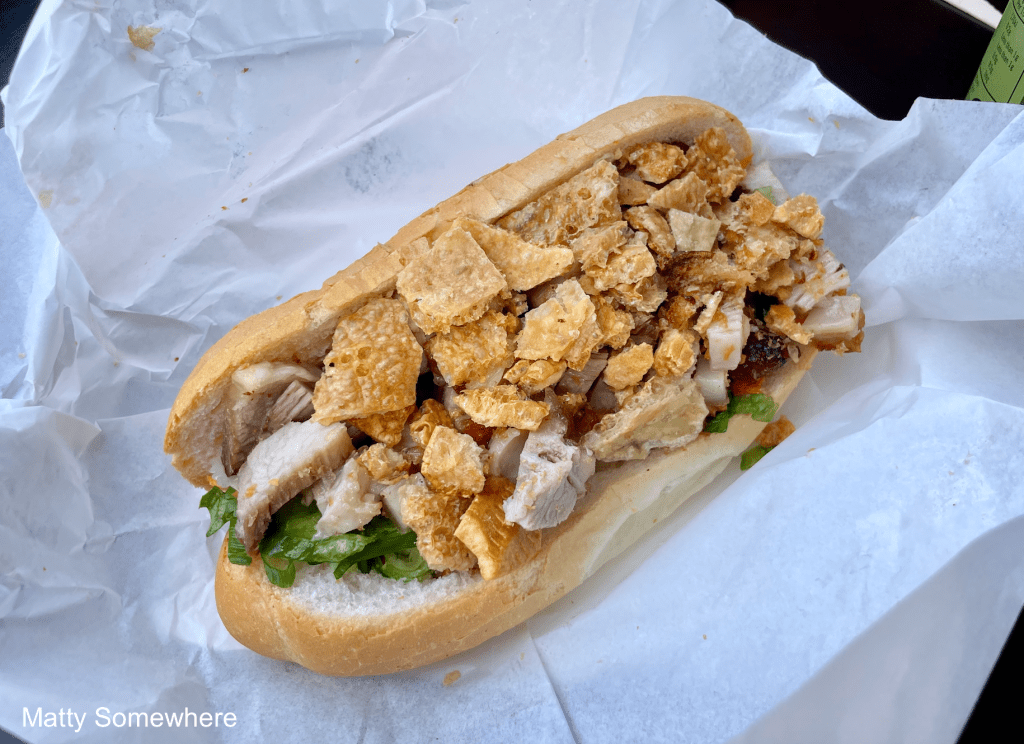 I’m not really in the mood for pie, so I opt for one of their roasted pork with crackling bánh mì’s instead. The flavours are fantastic, though it falls apart a little. I only manage to finish half of it before the seagulls swoop in.