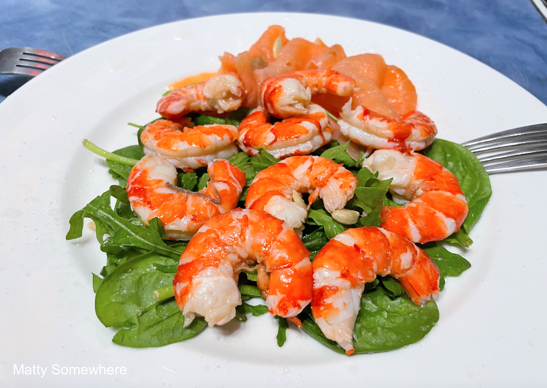 Shanny, like me, is a seafood lover, so earlier in Kiama we grabbed some fresh Australian Tiger Prawns and smoked salmon. Tonight’s dinner was simple yet perfect, paired with baby spinach, rocket, a squeeze of lemon, and a side of Marie Rose sauce. Light, easy, and incredibly tasty.