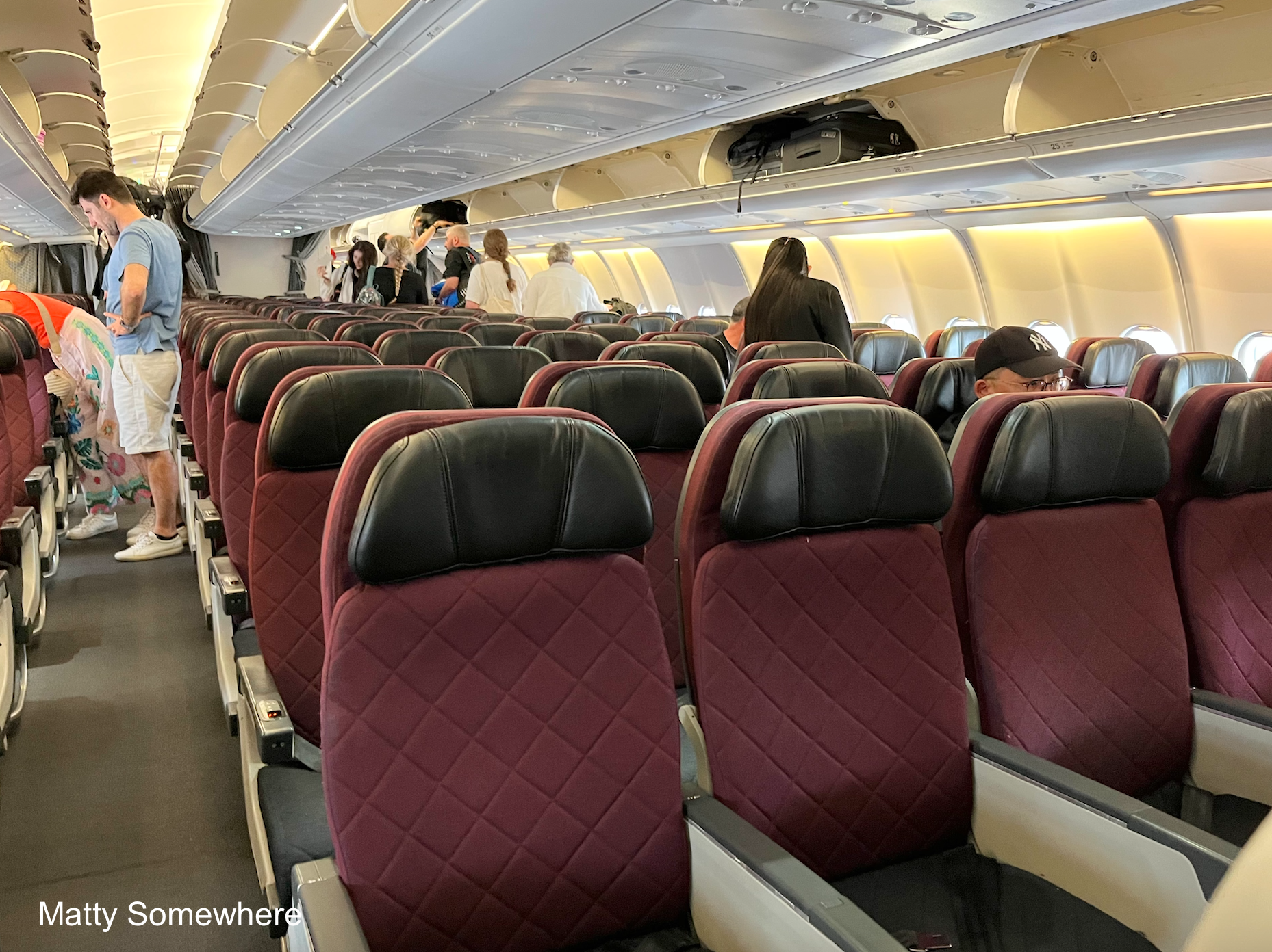 The seating layout is 2-4-2, with just eight seats across the cabin. This provides noticeably more space and comfort compared to airlines using a 3-3-3 configuration, which squeezes in nine seats across.