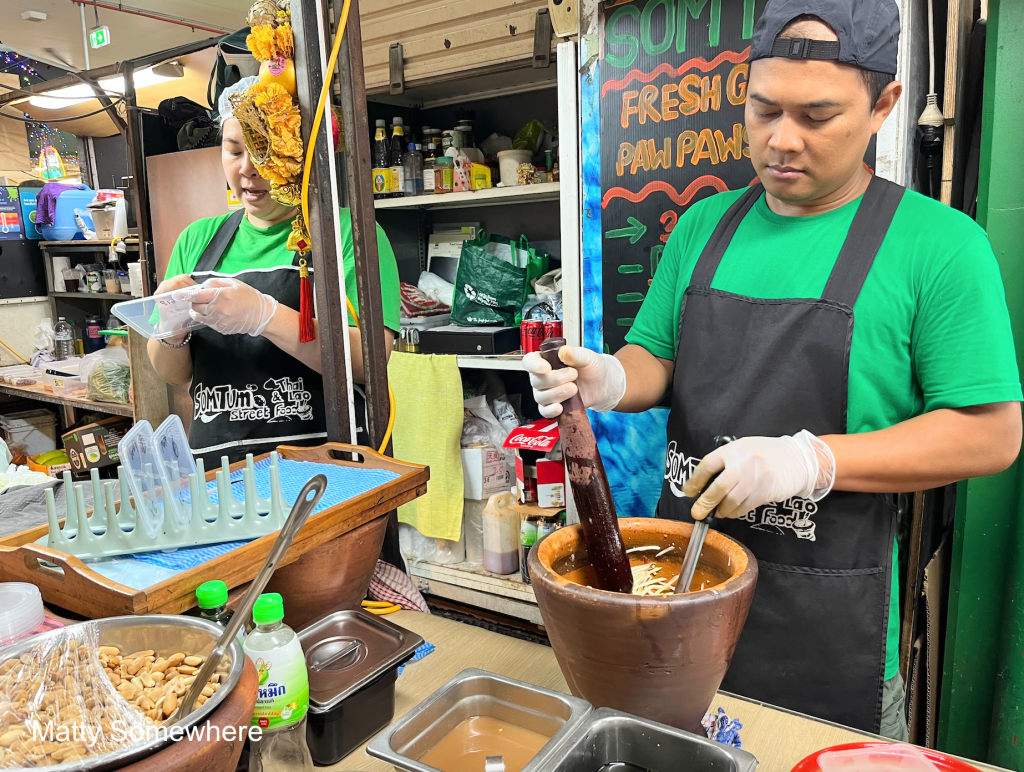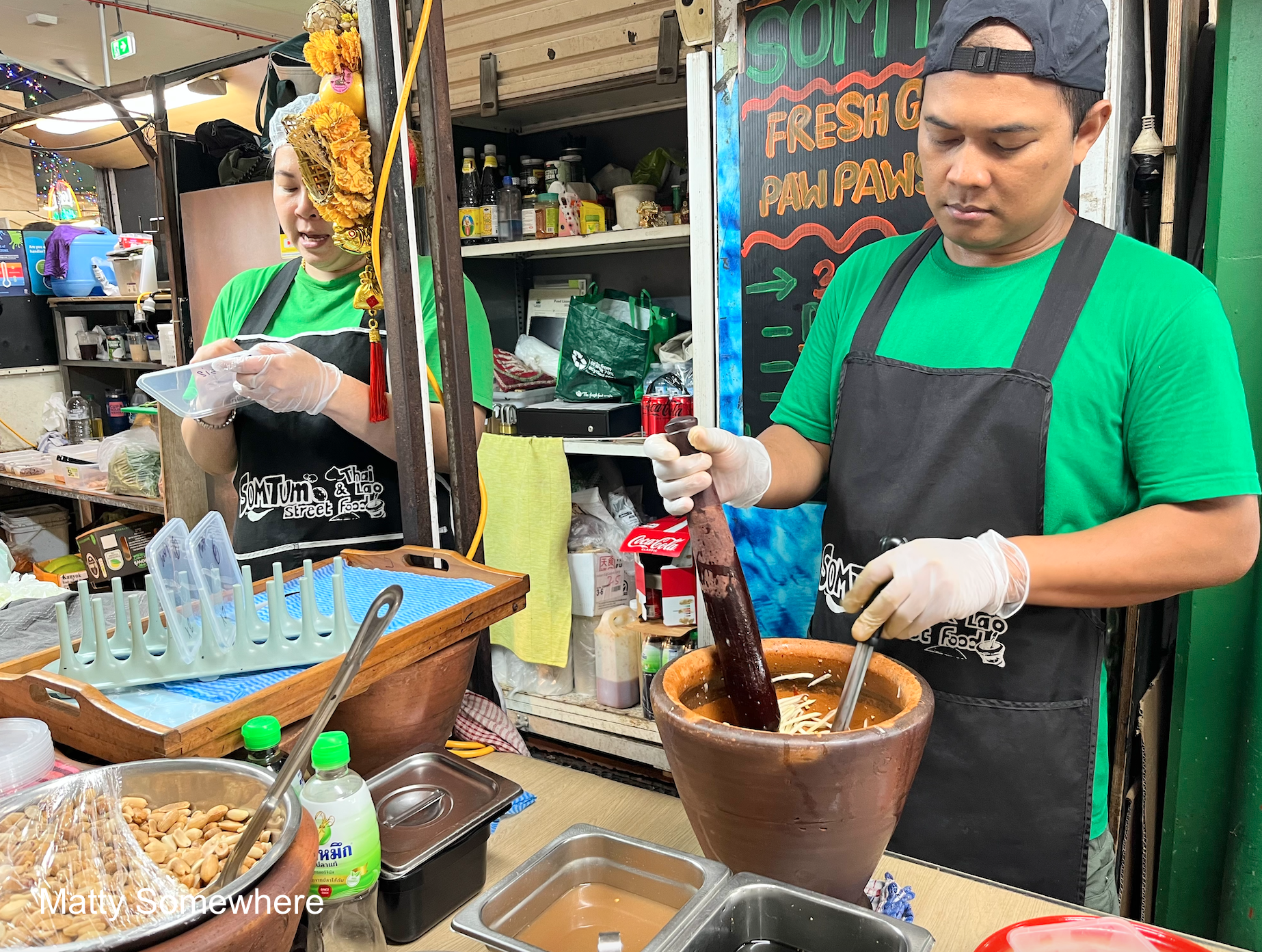 At lunch time, I head to SumTum Thai and Laos Street Food. Their green papaya (Som Tom) salad is unbeatable, which is pounded in the mortal and pestle right in front of you.