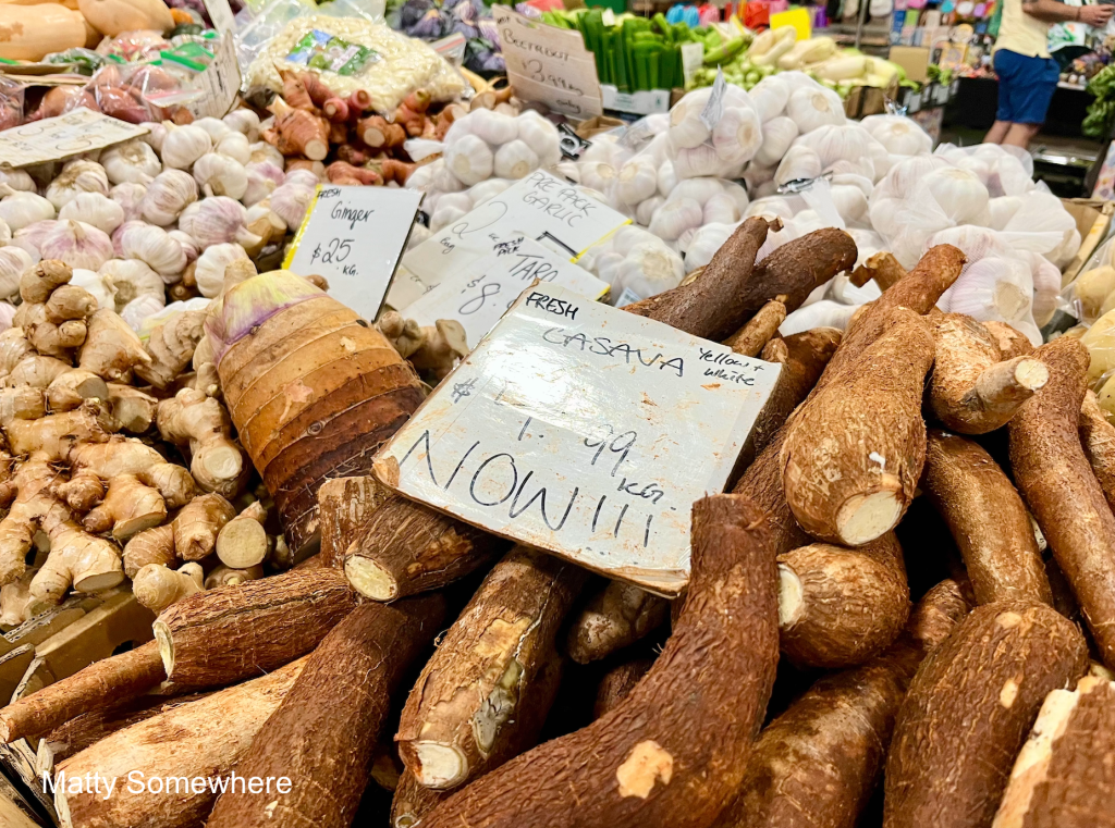 While the hands of ginger are a steal at $25 a kilo (I’m used to paying up to $45 at the supermarket), the cassava also catches my eye and I’m already thinking… cassava chips?
